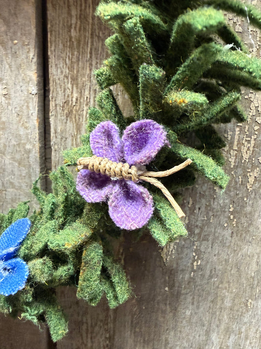 Wreath, 22", PINK PANSIES/YELLOW FLOWERS
