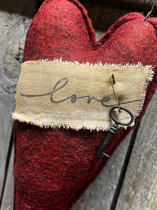 Sold outHanging Heart w/ Key, 13", RED FELT