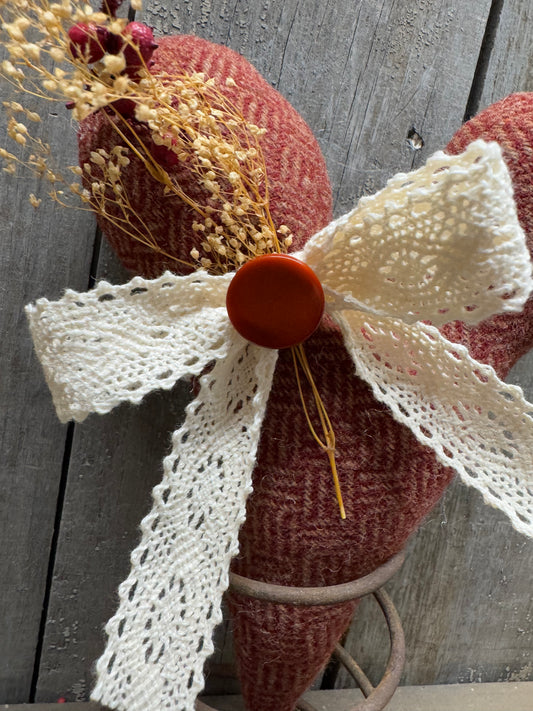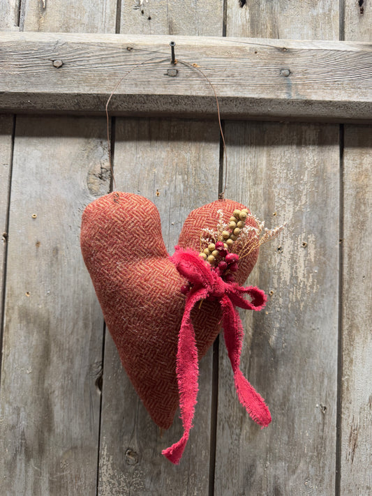 HEART HANGER, Wool & Velvet Ribbon, Assorted