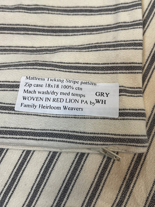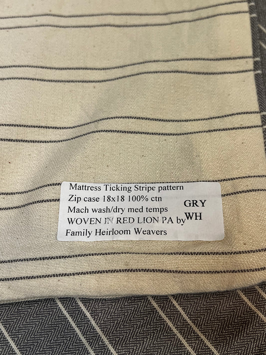 Pillow Case SET/2 ,18"x 18", Zippered, Family Heirloom Weavers, GRAY/WHITE