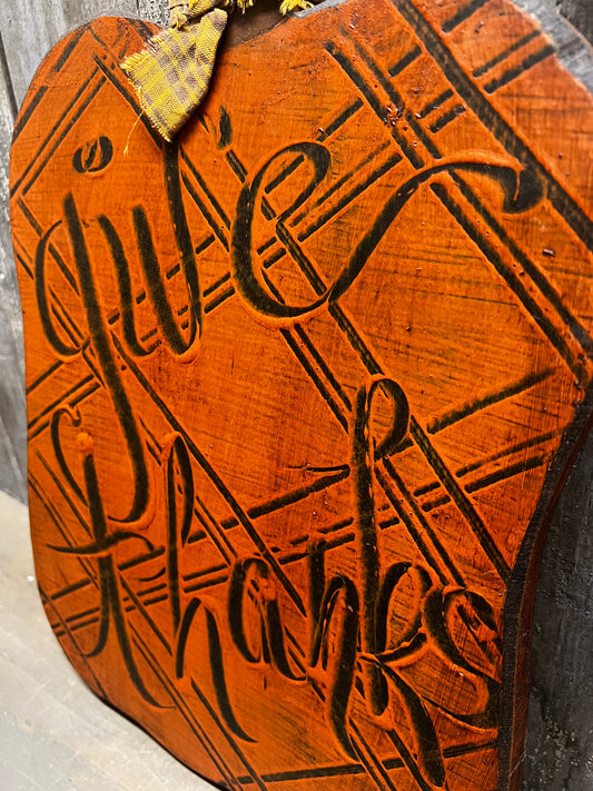 Pumpkin Sitter, 11"x 15", Wax Combed, GIVE THANKS