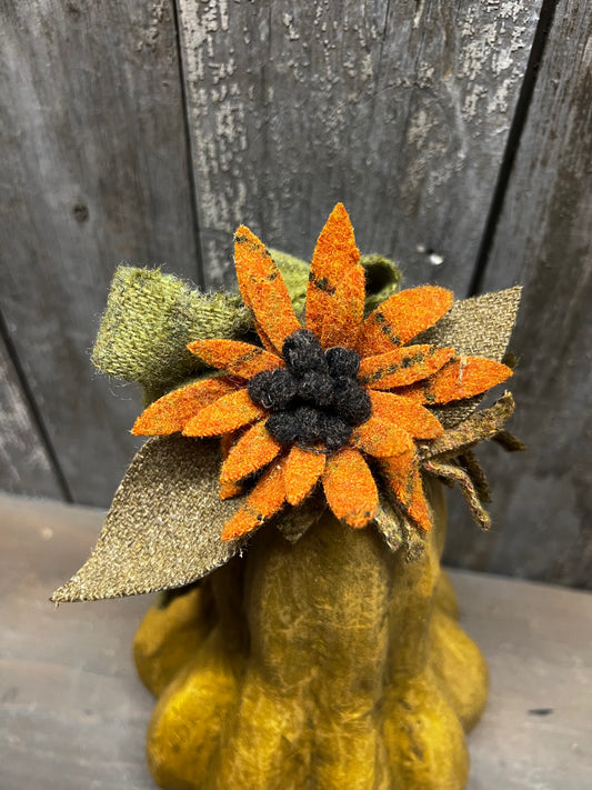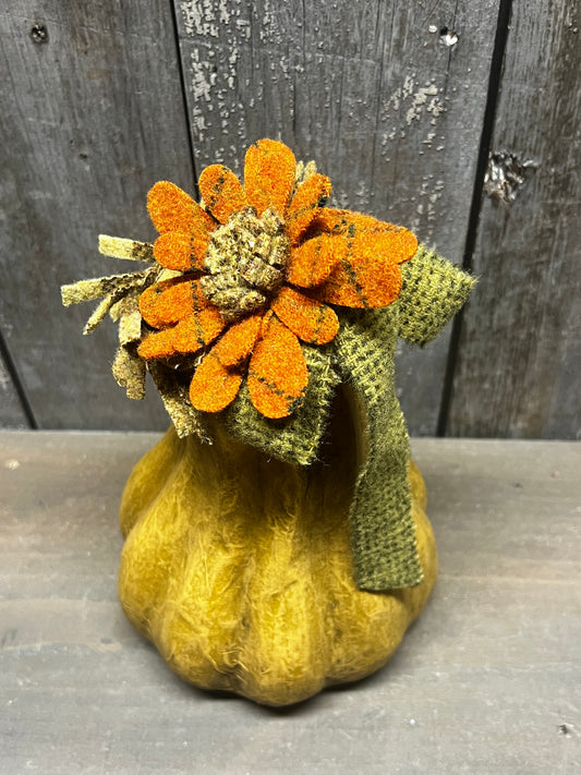 Paper Mache Pumpkin, 10.5", WOOL SUNFLOWERS