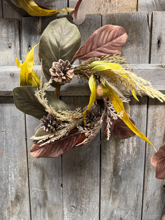 Candle Ring, 4" Inner Ring, MAGNOLIA LEAF & PINECONE