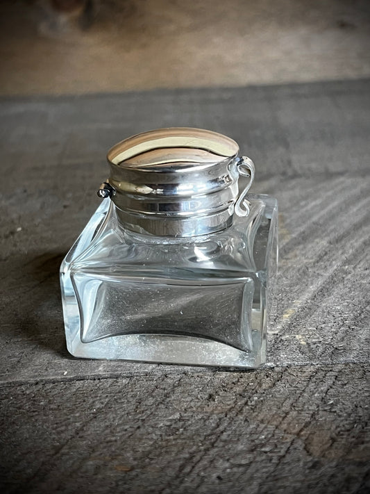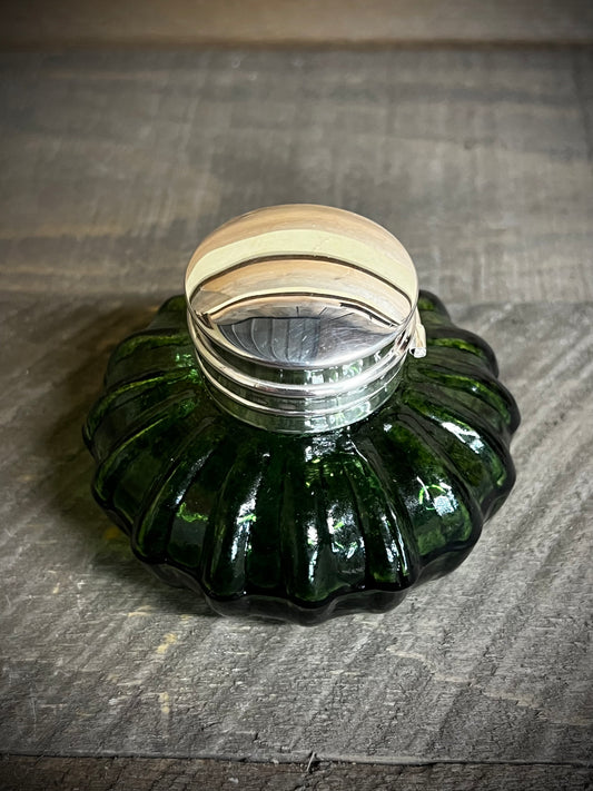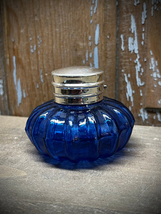 Inkwell, 3", Swirl Glass, COBALT BLUE