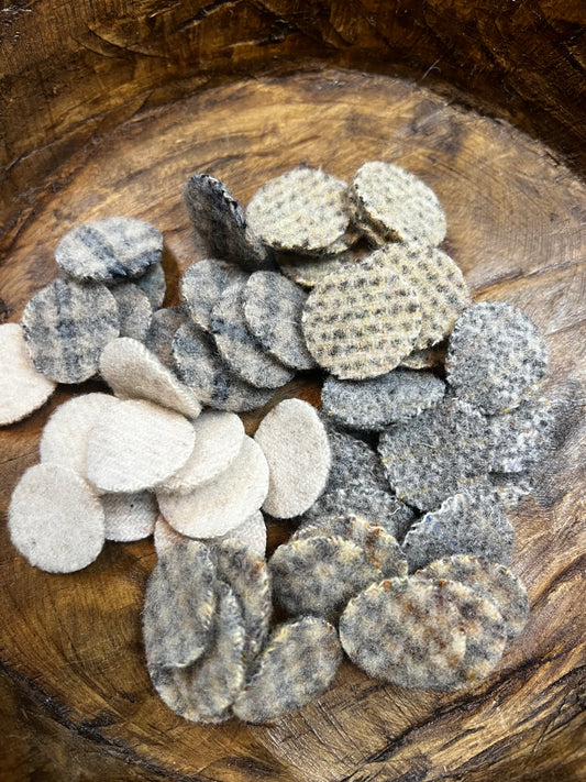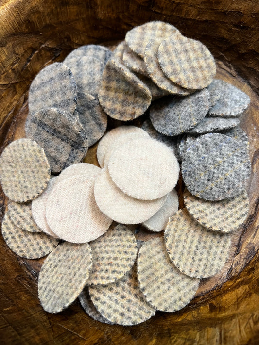 WOOL PENNY CIRCLES, 1.5”, Assorted Colors