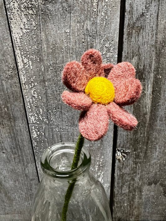 Sheep, Small Felted, GREY W/ DUSTY RED PANTS & NARCISSUS FLOWER