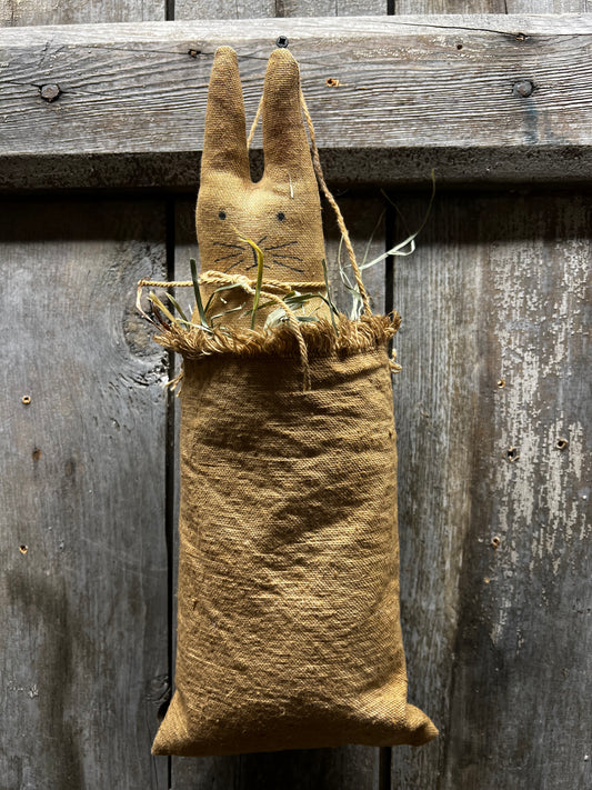 Bunny, Small Felted, WHITE W/ BLUE JACKET & NARCISSUS FLOWER