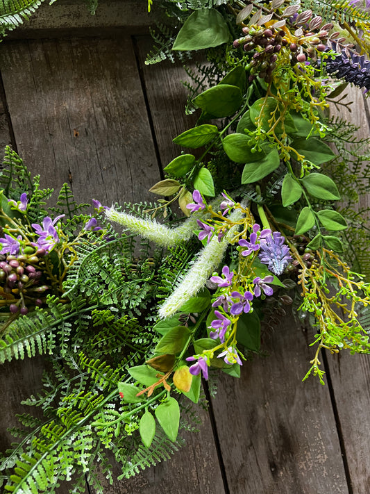 Wreath, 18", GREEN BUCKLER FERN & GRASS