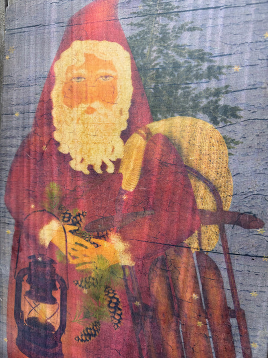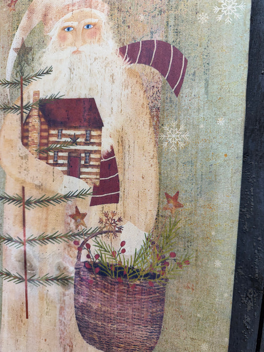 Tavern Sign, 24" x 11", SANTA WITH LOG CABIN