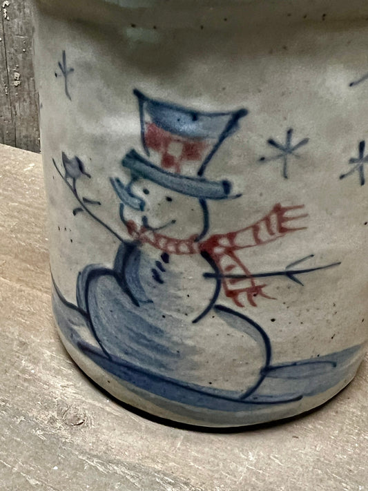 Sold outCandle Crock, Rowe Pottery, SNOWMAN