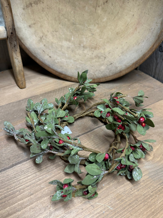 Candle Ring, 4.5" Inner Ring, GREEN LEAF & RED BERRY
