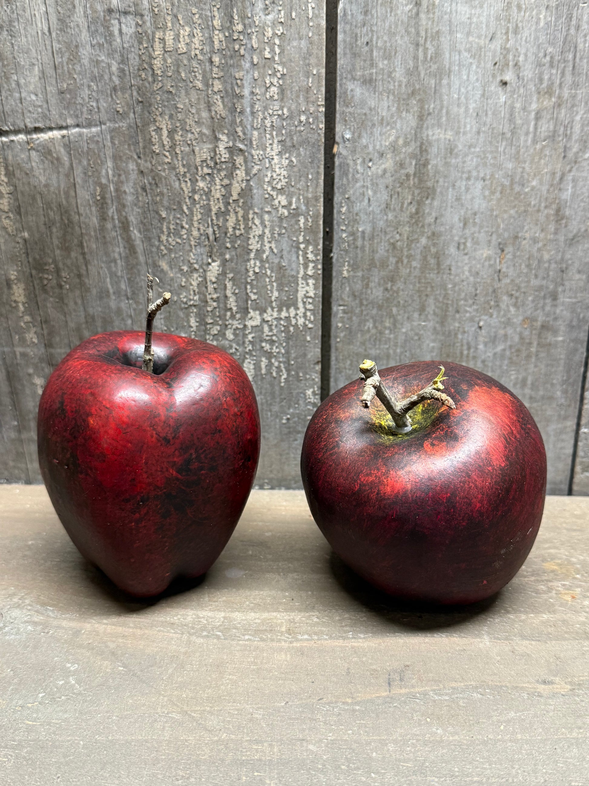 Our last crop of apples are both dirty and a bit "bruised." The last hail storm really did a number on the crop. But don't worry! The marks make them look so darn real. Foam apples, grunged up by us and a stem cut from my old apple tree. I just love the look! NOTE...if you bought our original "Dirty" apples, the shape of these are a bit different. Measures 3.5" x3". Price is for ONE apple. Shown also with our "dirty" ROUND Apple, sold separately.