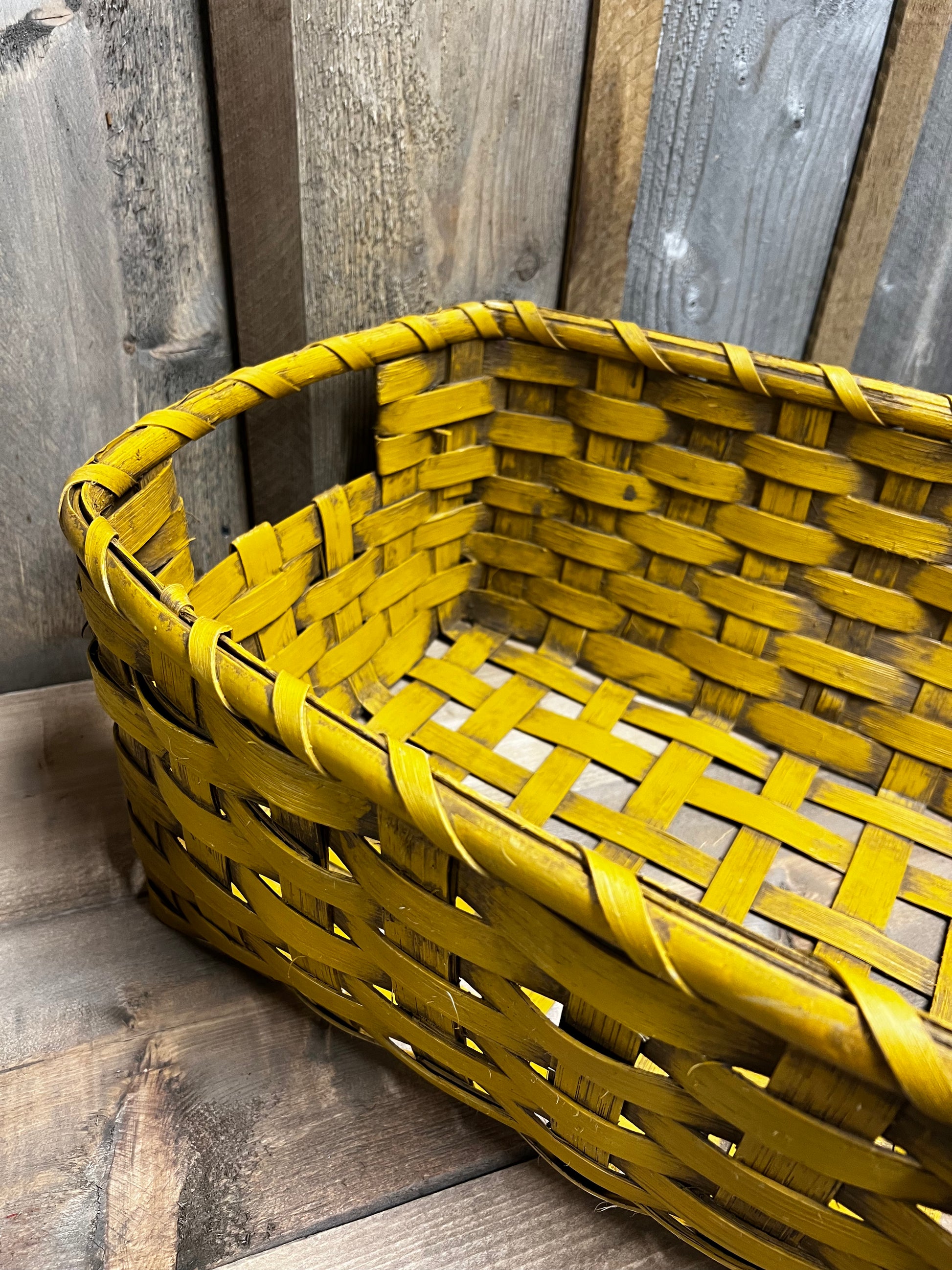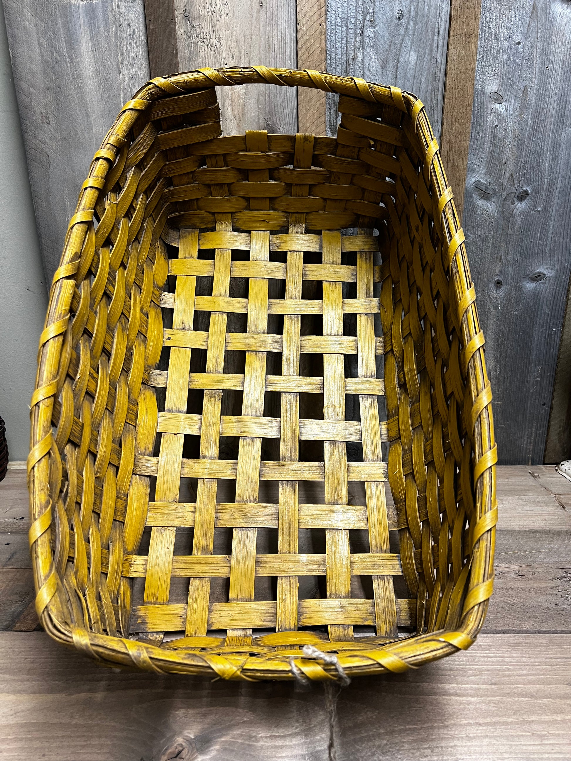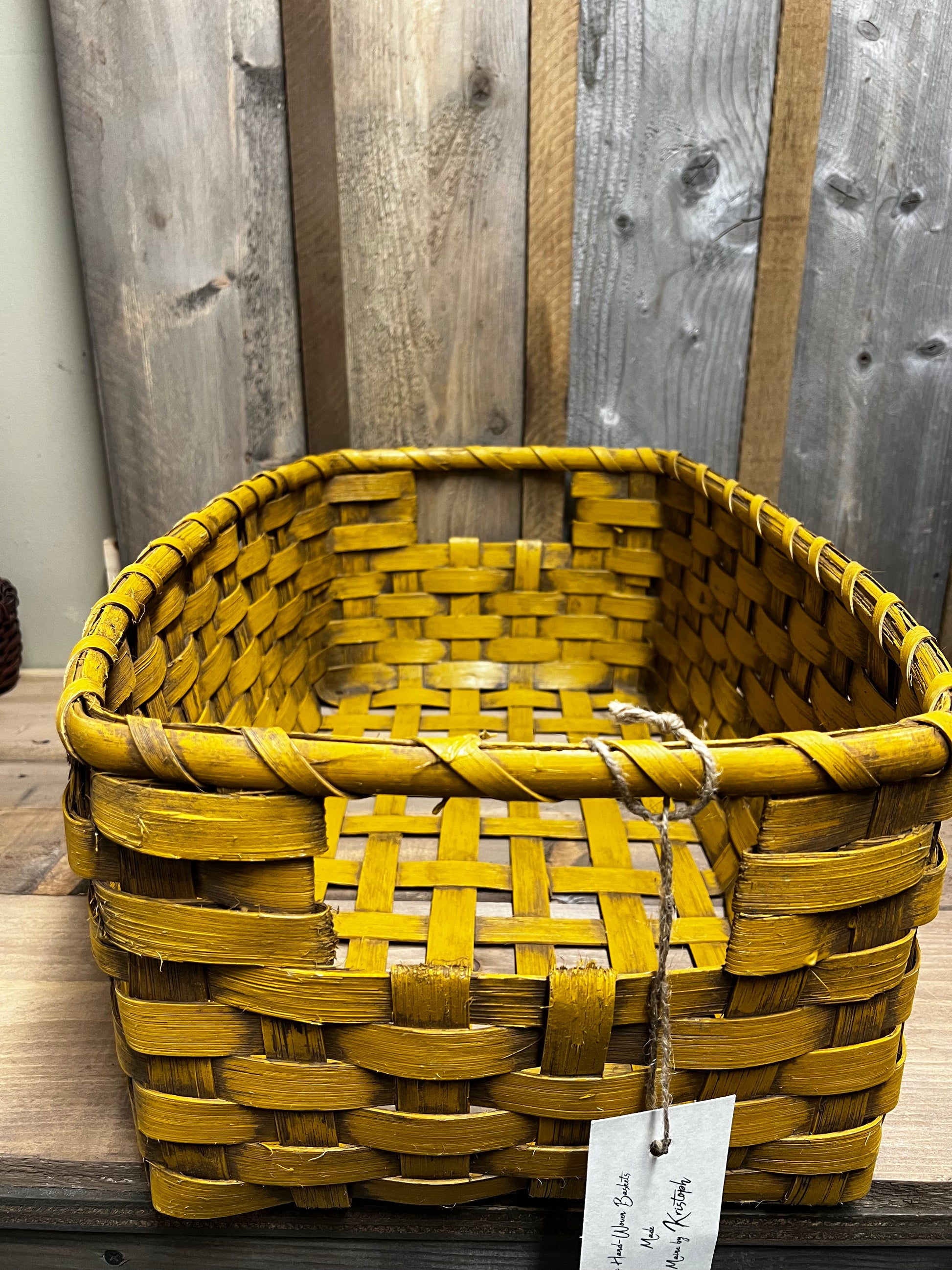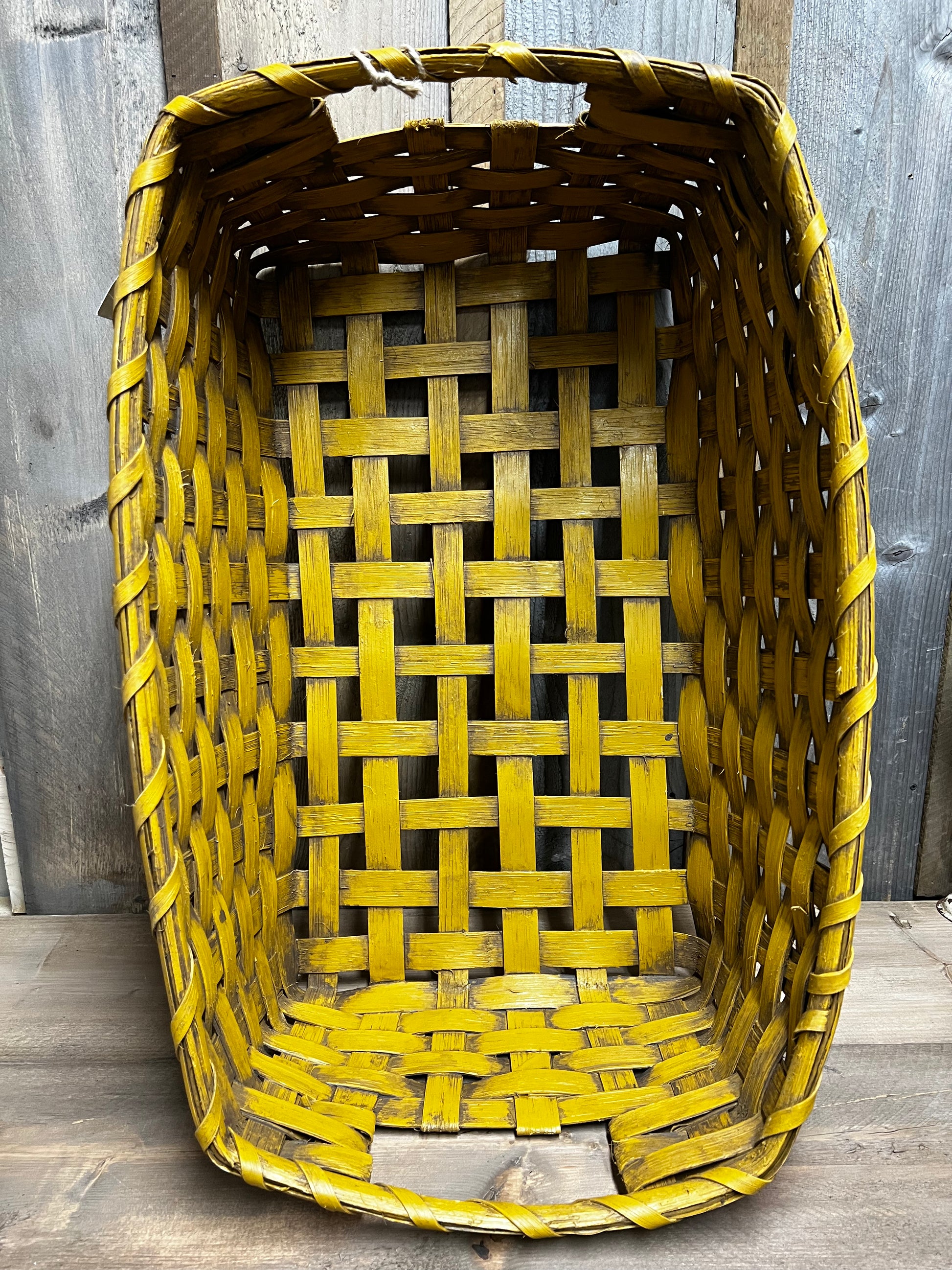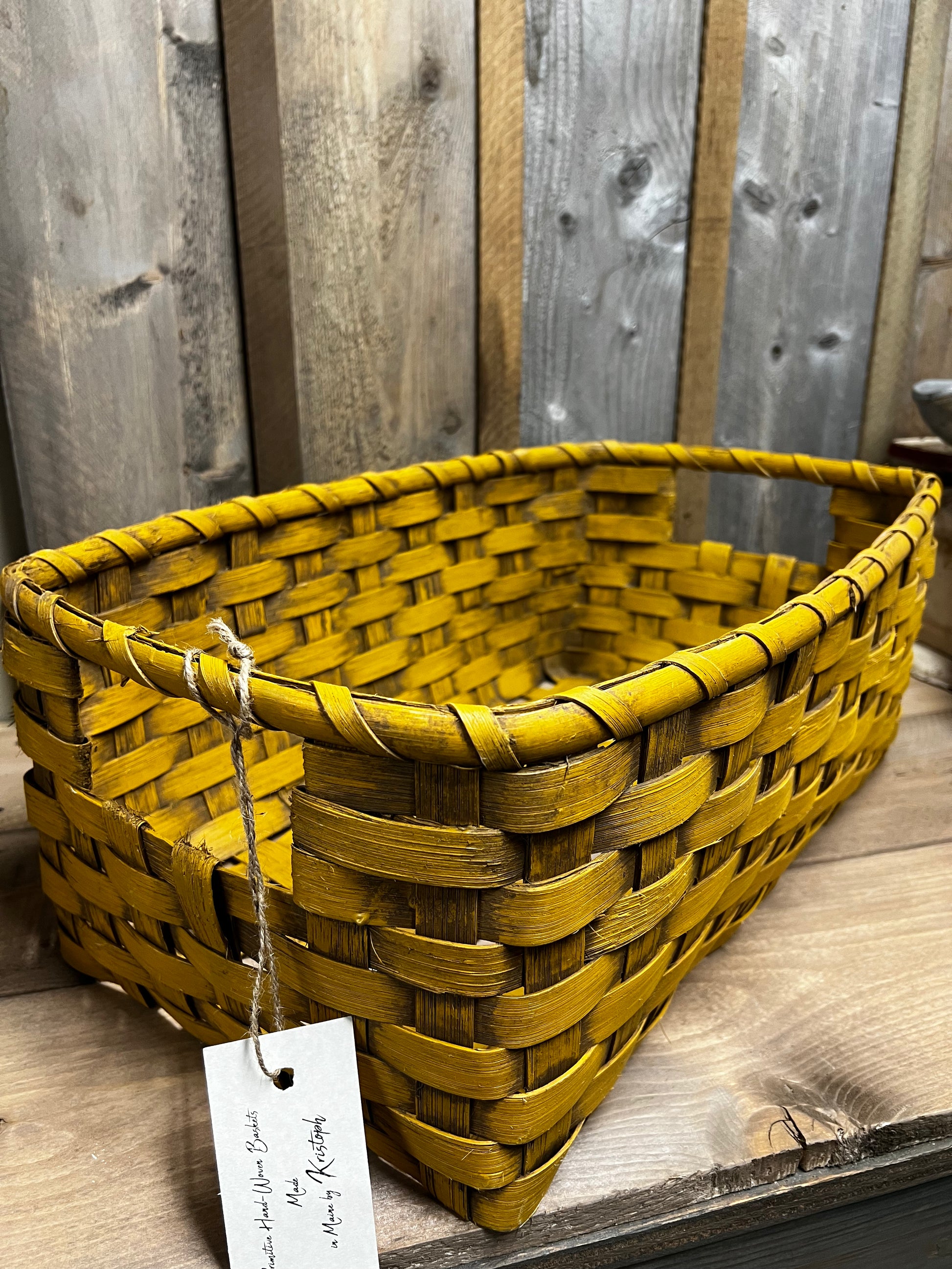 Handcrafted in Maine by Basket by Gin, the quality workmanship is sure to please. Please expect slight variations in size and color considering they are all made by hand by various weavers. The Small Laundry Basket measures about 23" long, 8.5" high and 15" wide. Bottom is larger . There is a multi process application of paint to get the lovely look.