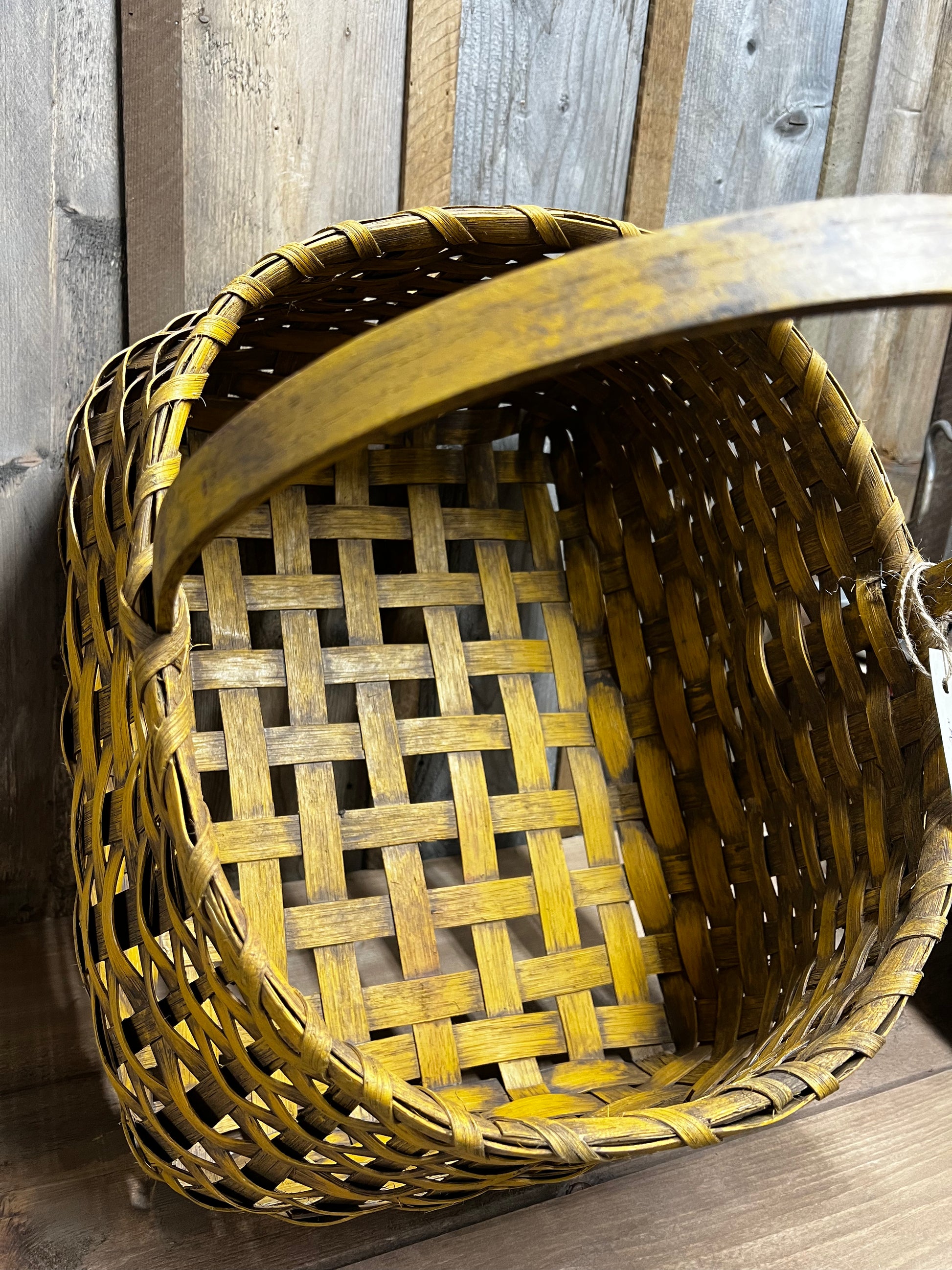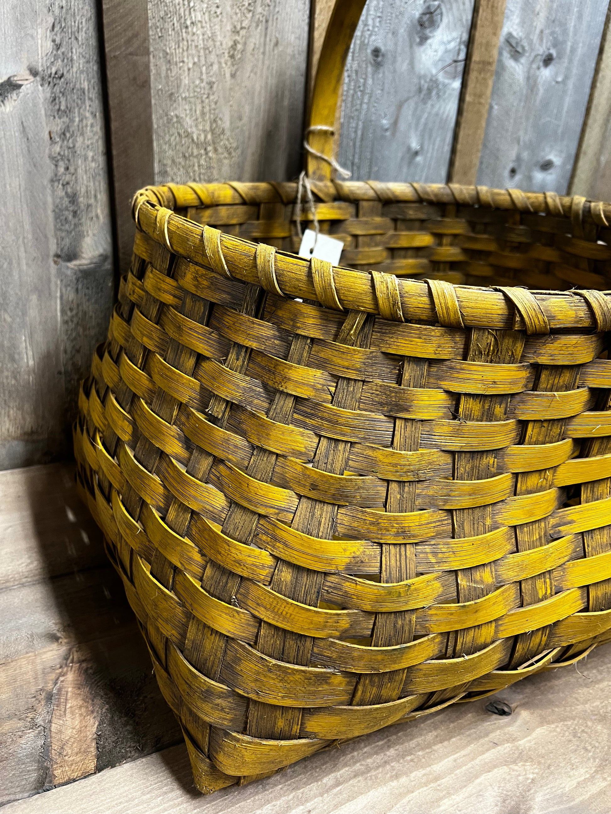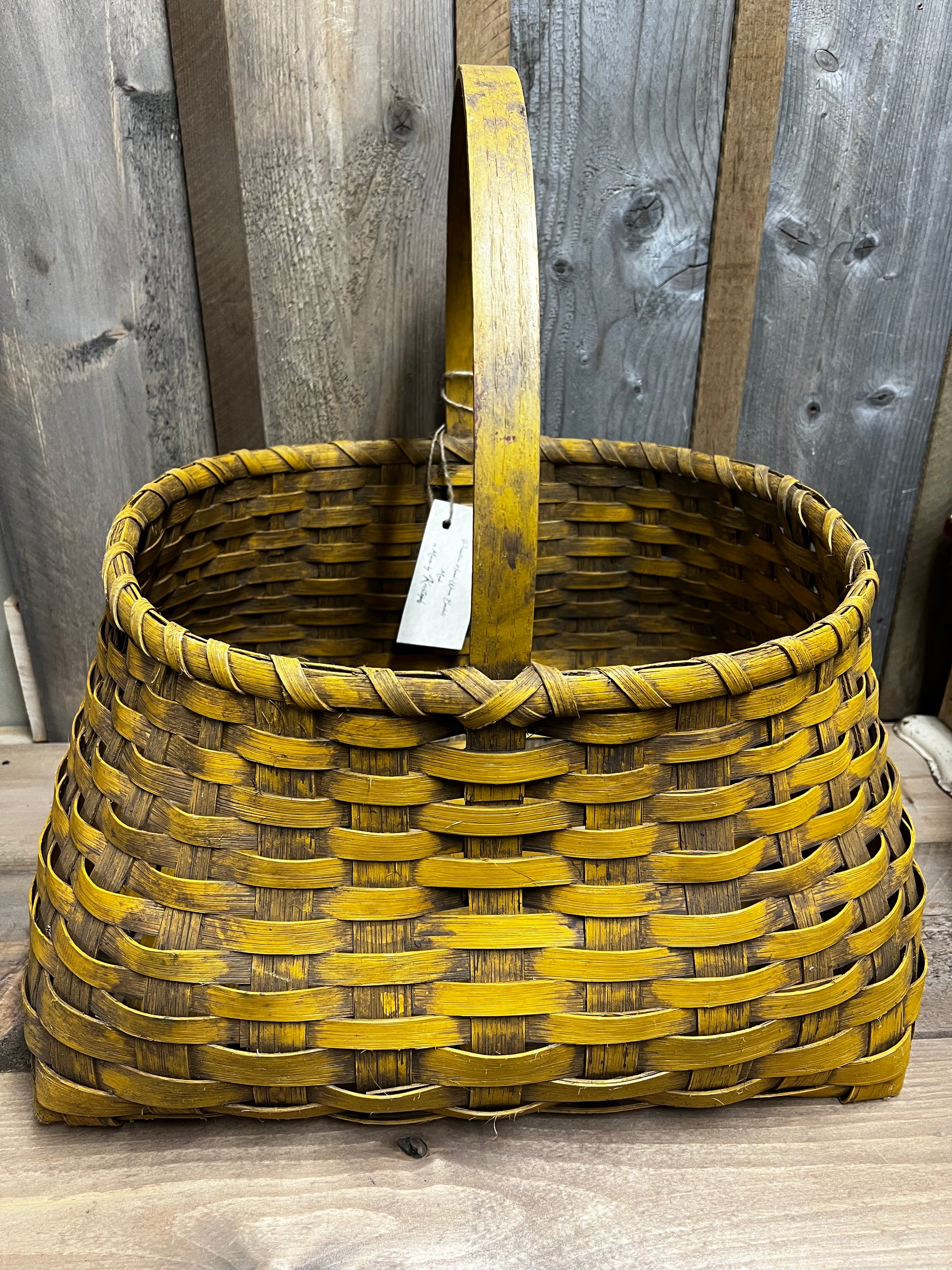Handcrafted in Maine by Basket by Gin, the quality workmanship is sure to please. Please expect slight variations in size and color considering they are all made by hand by various weavers. The Gathering Basket measures about 20" long, 21" high to the top of the handle and 15" wide at the top. Bottom is larger . There is a multi process application of paint to get the lovely look.