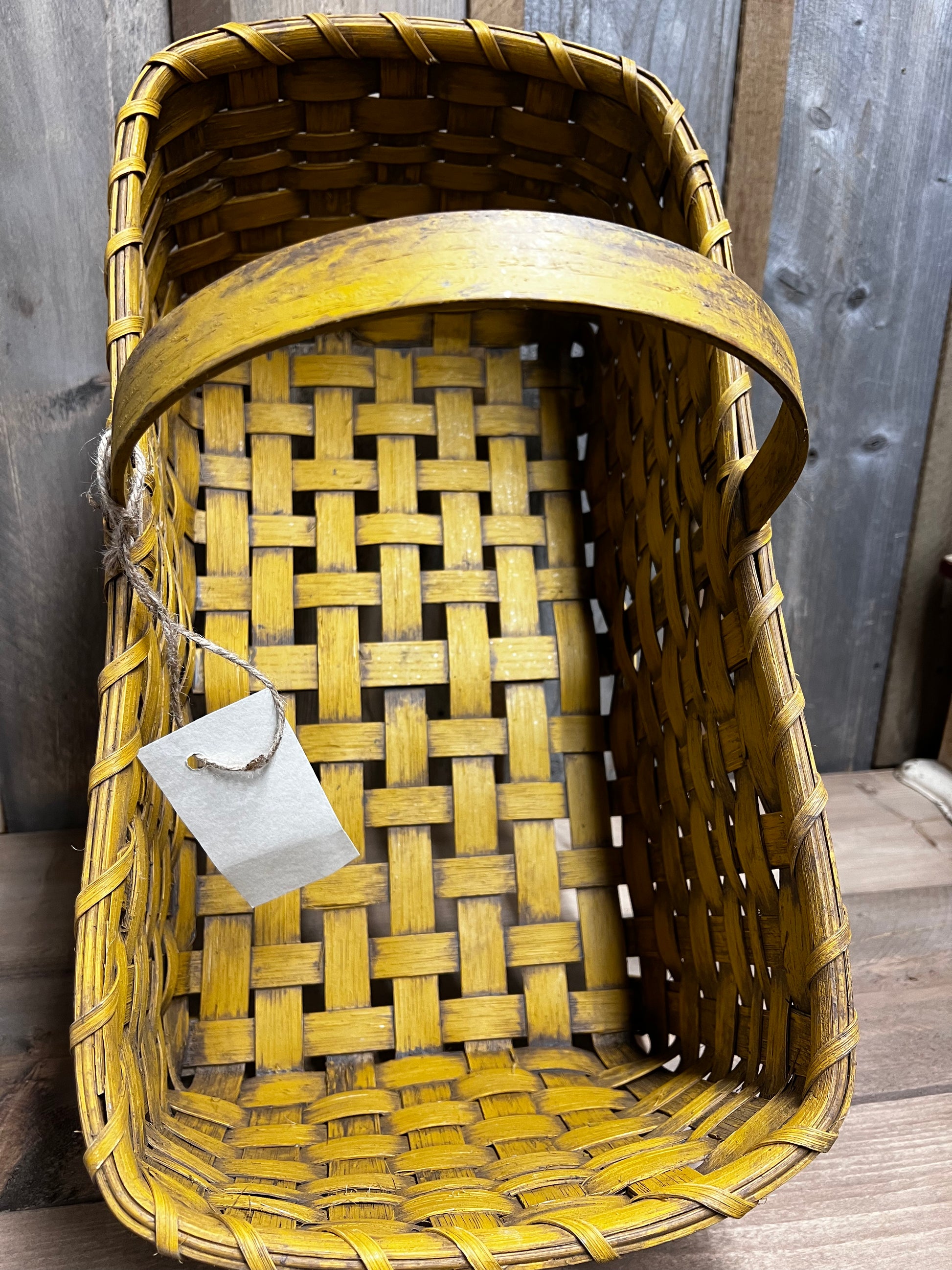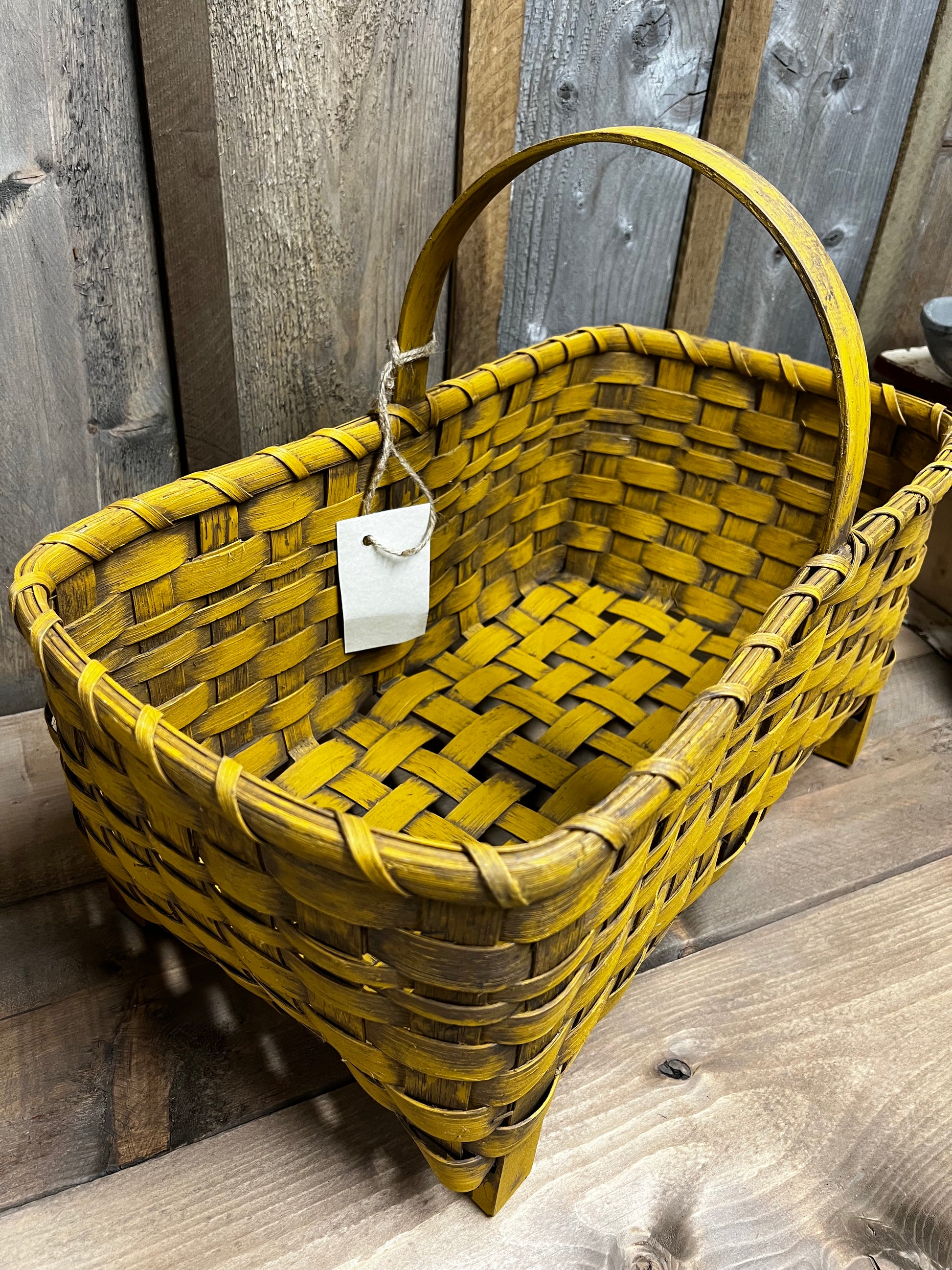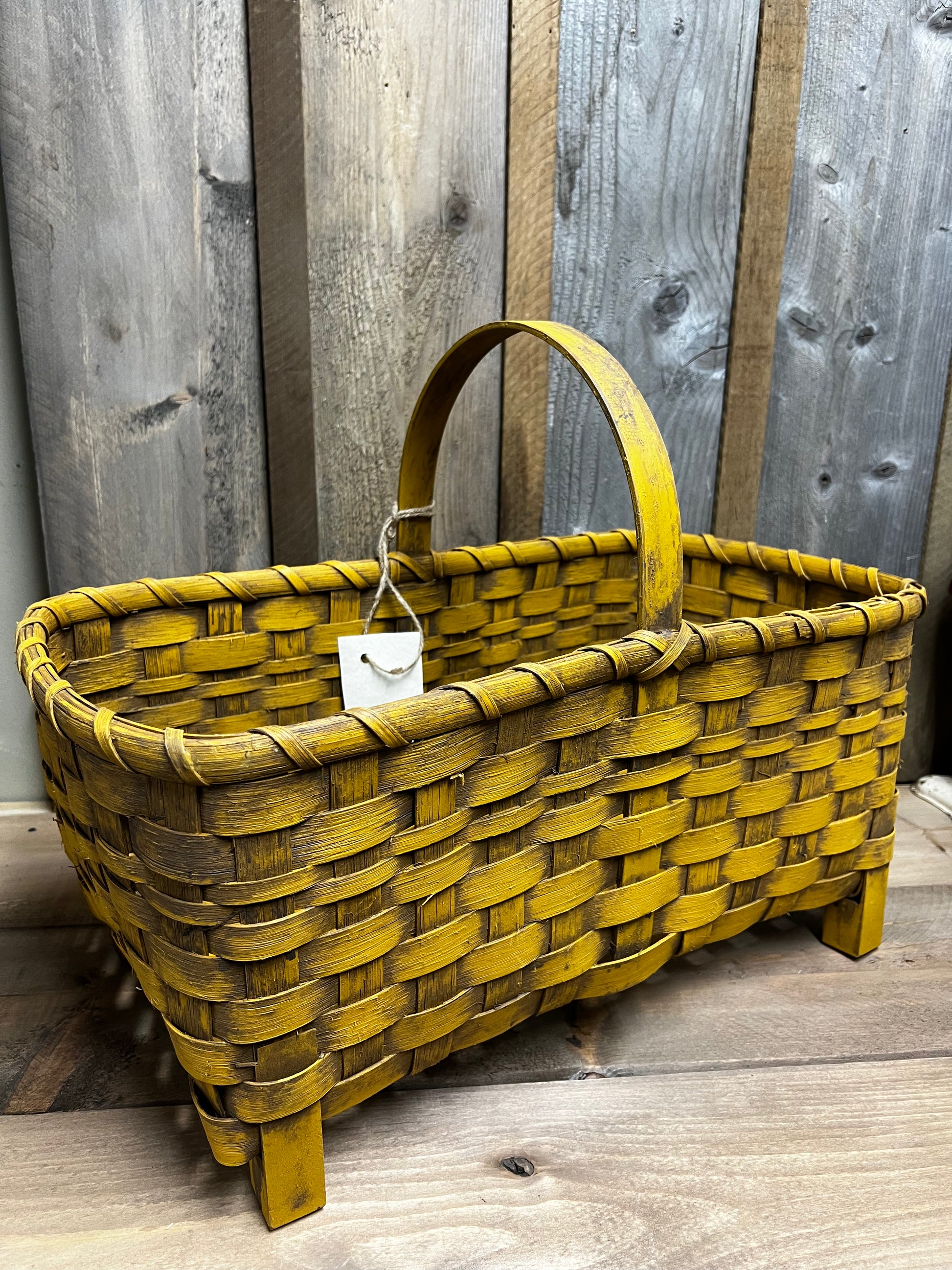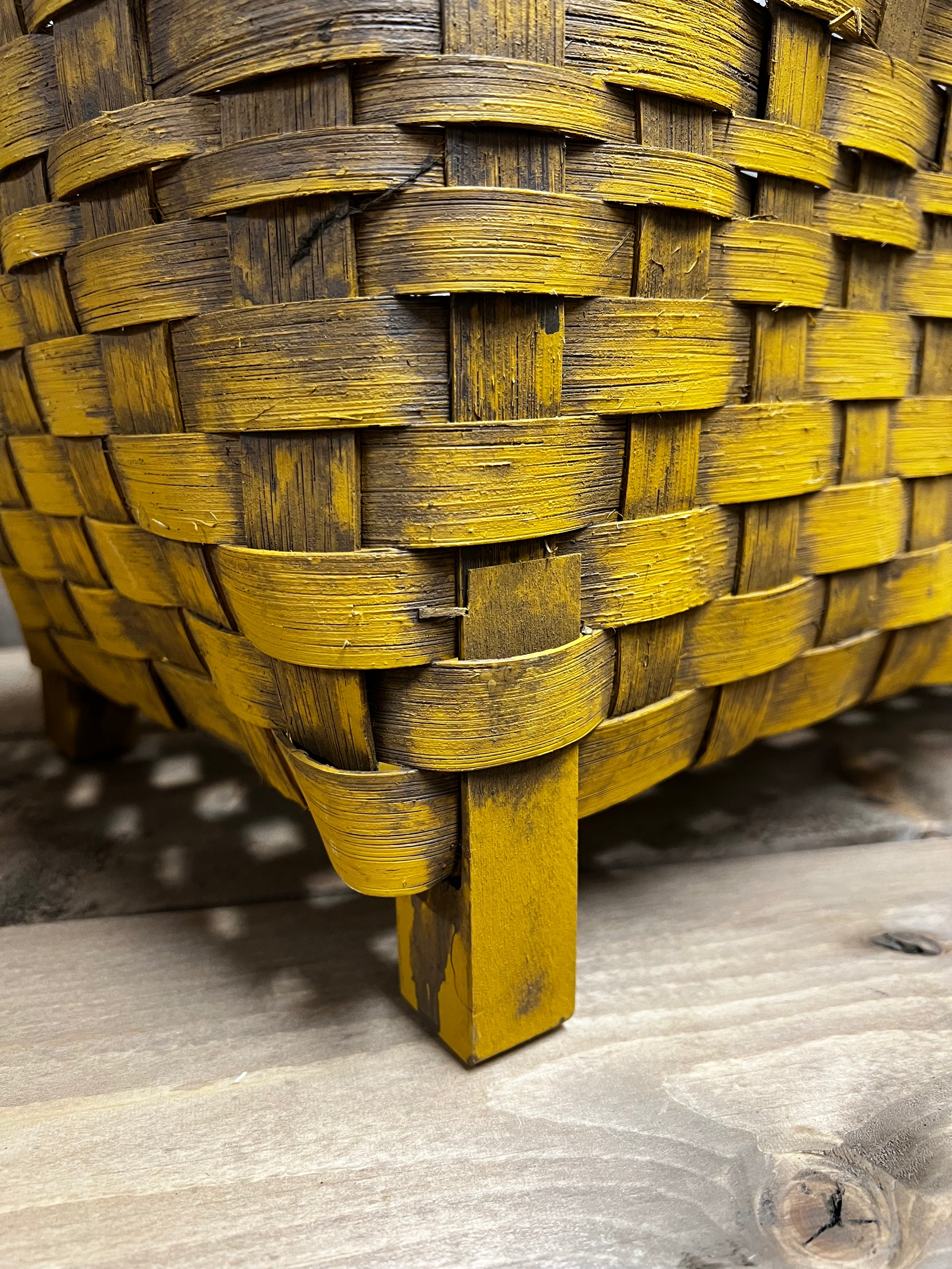 Handcrafted in Maine by Basket by Gin, the quality workmanship is sure to please. Please expect slight variations in size and color considering they are all made by hand by various weavers. The Footed Basket measures about 21.5" long, 17" high and 11" wide. There is a multi process application of paint to get the lovely look.