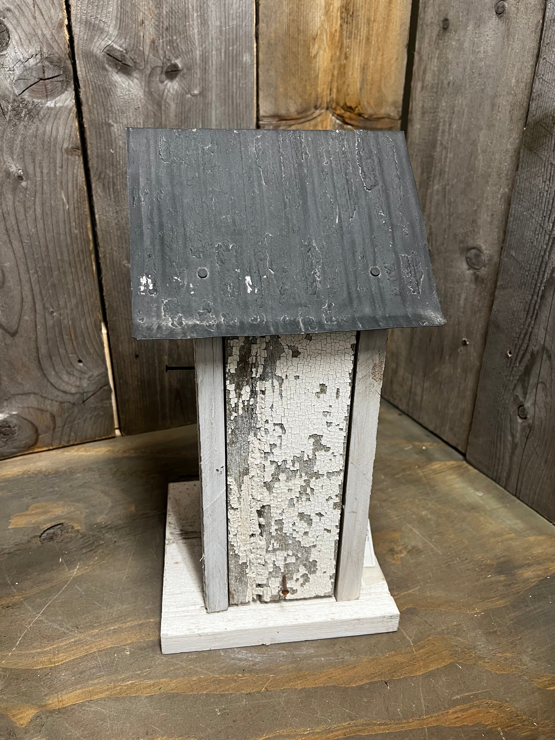 Made from old fences, barns, roofs and doors, these PA Amish-Made birdhouse have a great primitive look. Most have "clean out" doors so you birdies can reuse them every year with fresh nesting. Or perhaps you want them displayed inside, either way each on is a masterpiece. Expect rust, chippy paint, nail holes and rough edges...be extra careful with the tin roofs.