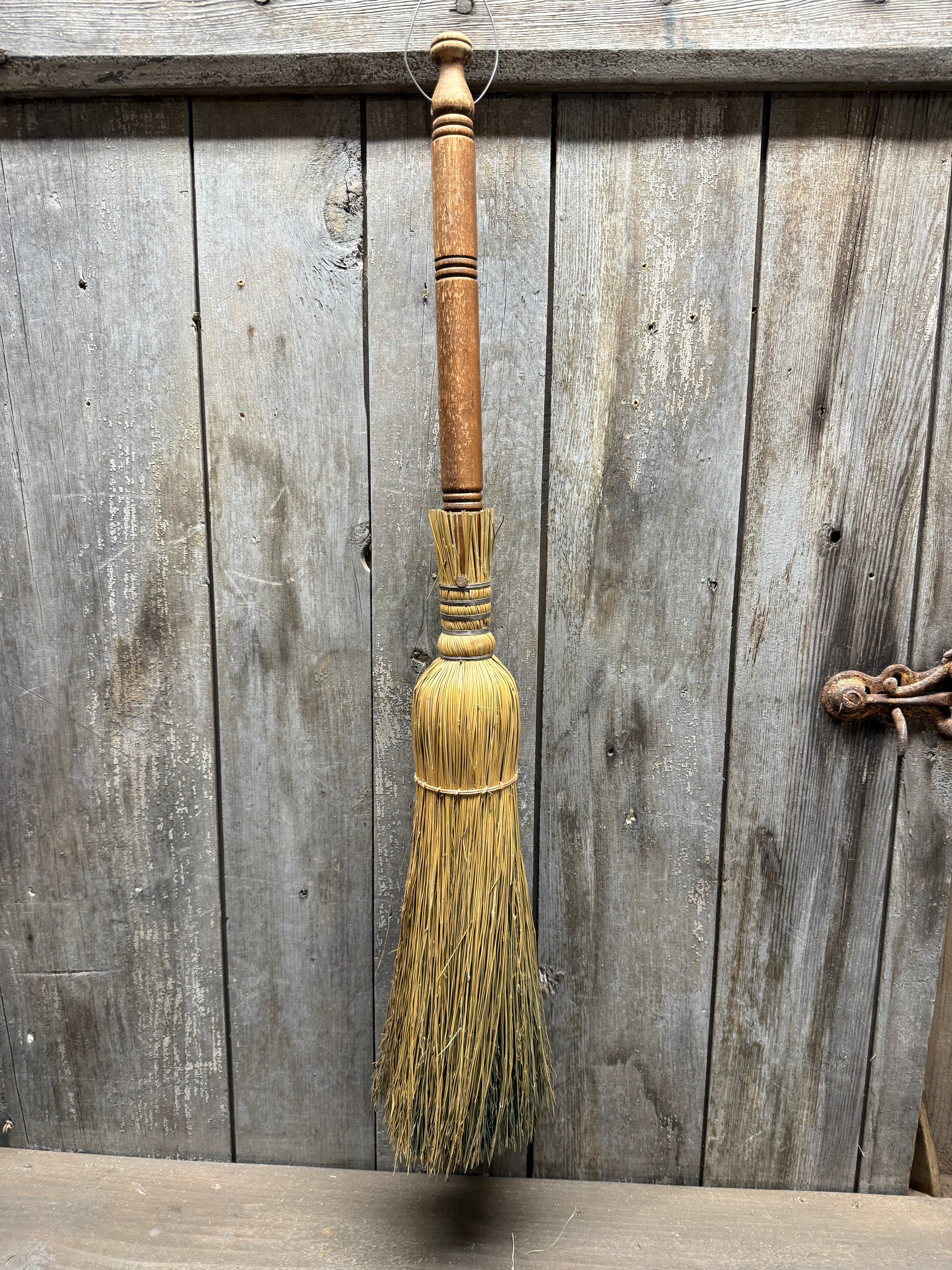 The lovely spindle handle gives this heart style broom a unique look. Measures 26" long