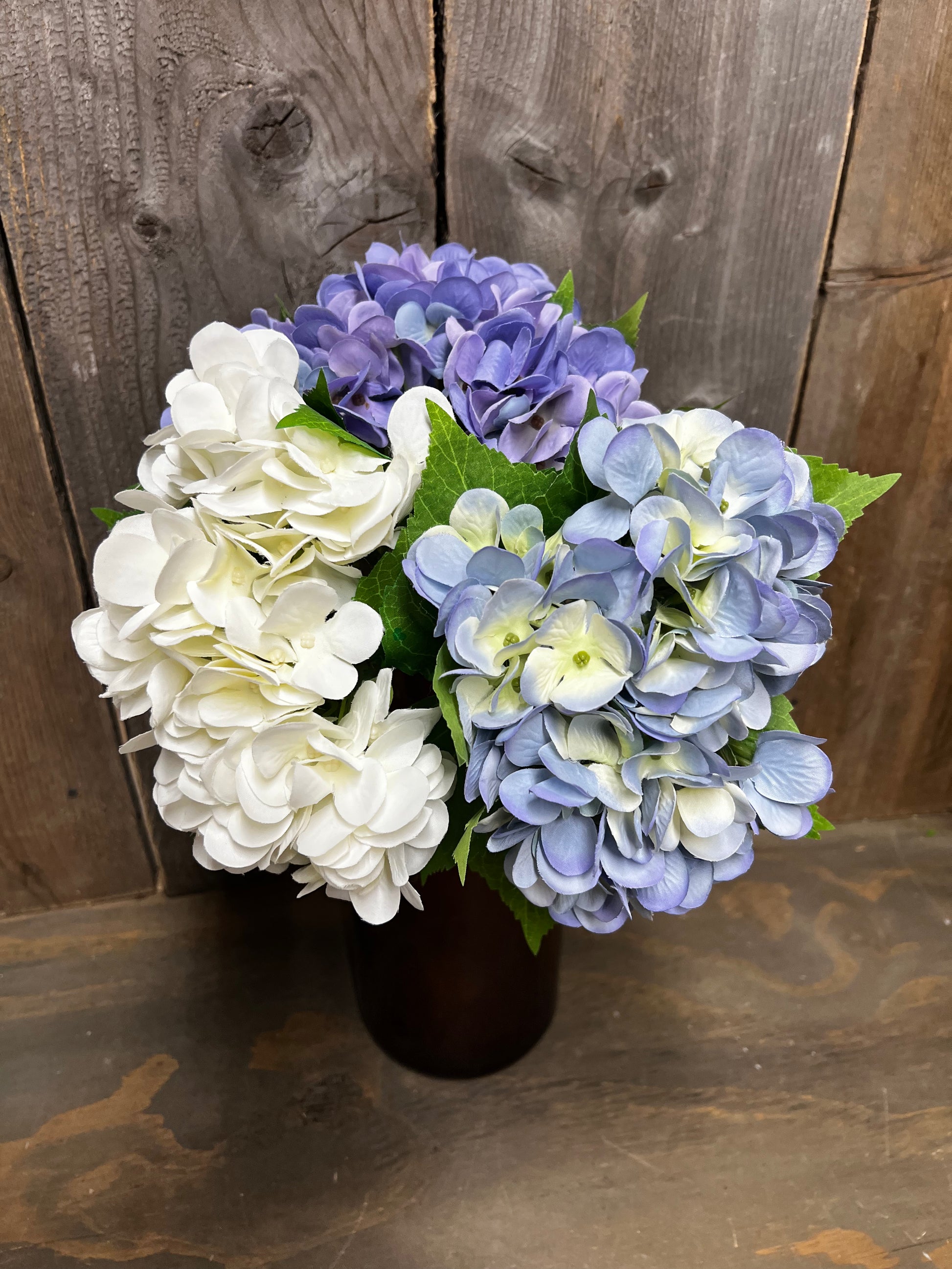 So sweet! Our Hydrangea bundles are just the right size for small spaces and groupings. Or mix and match for a larger display. Realistic and lovely! Measures 11.5" long and 3 stems included in each bundle. Want to tone down the color? Dip them in a mixture of coffee stain and get a grungy effect.