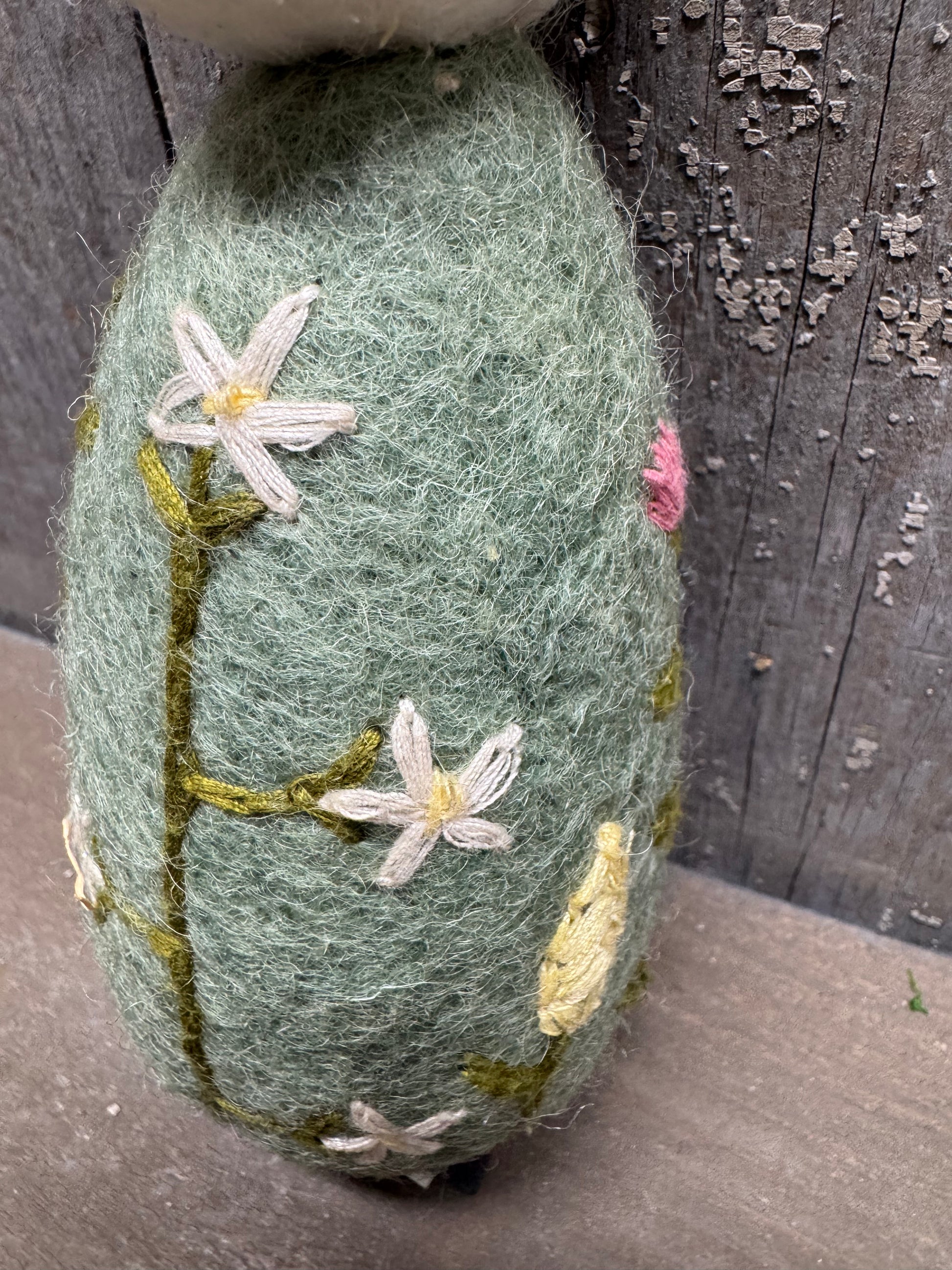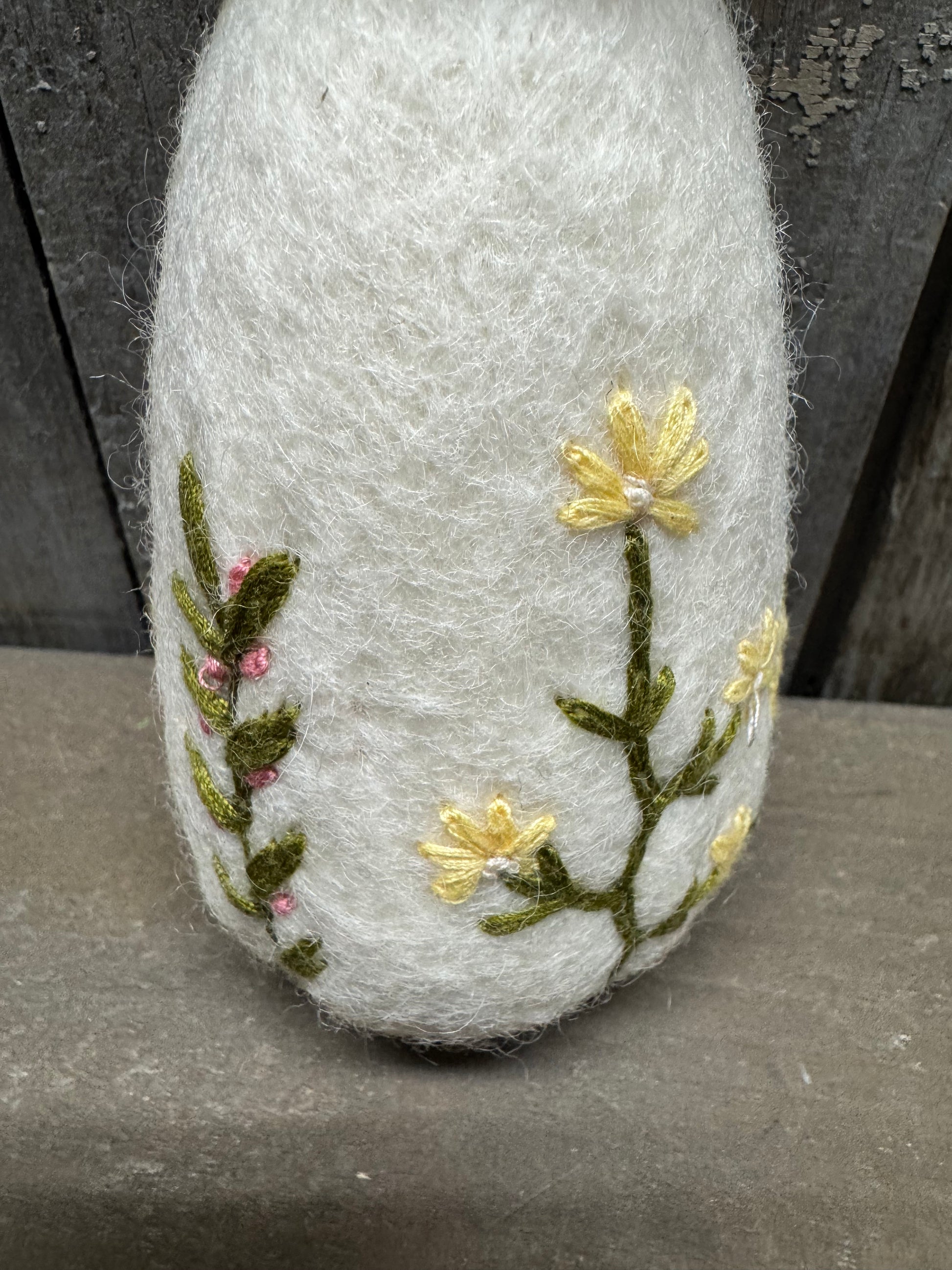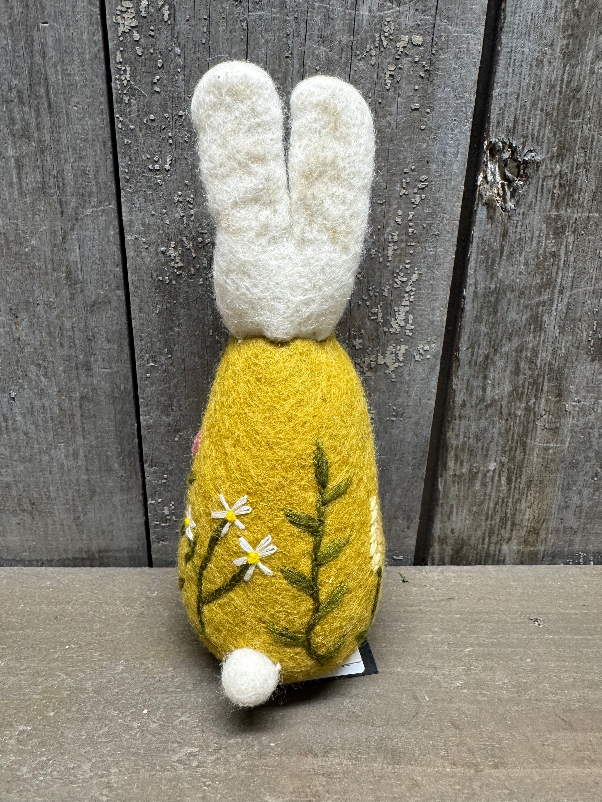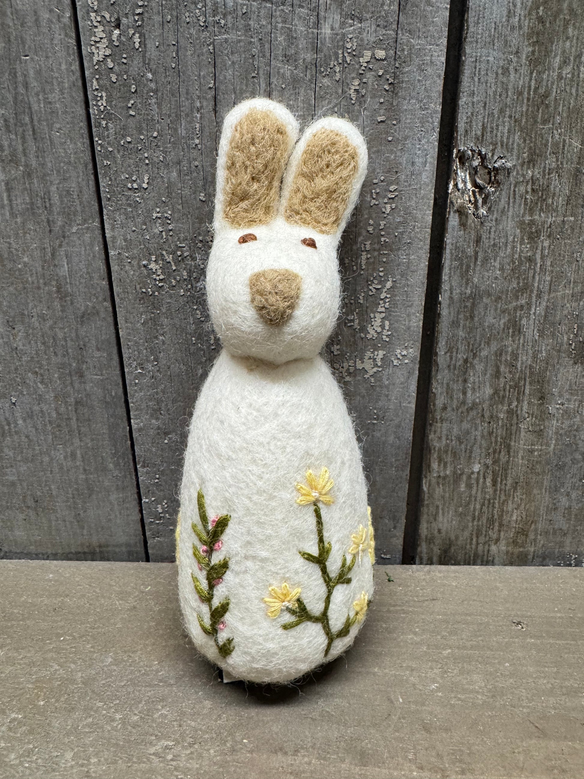 Bunny, Big, Felted, WHITE W/ FLOWER EMBROIDERY, Green, Yellow or White