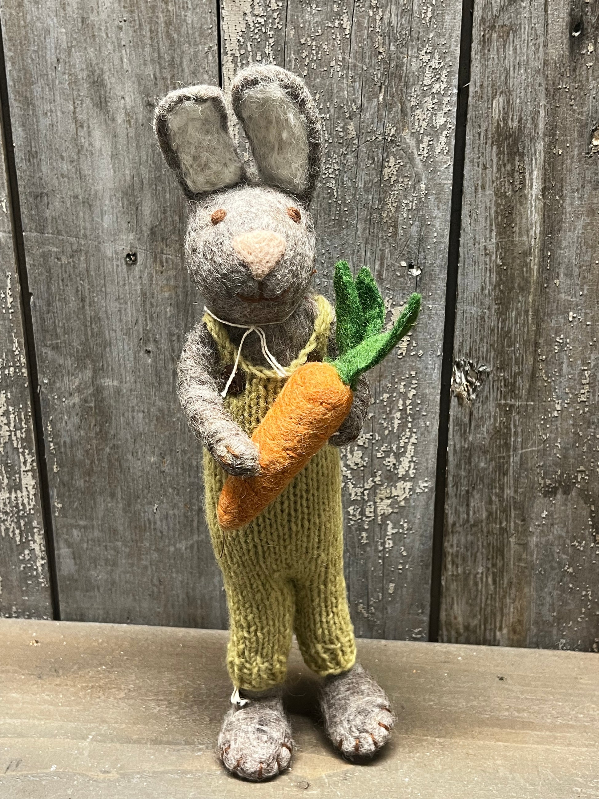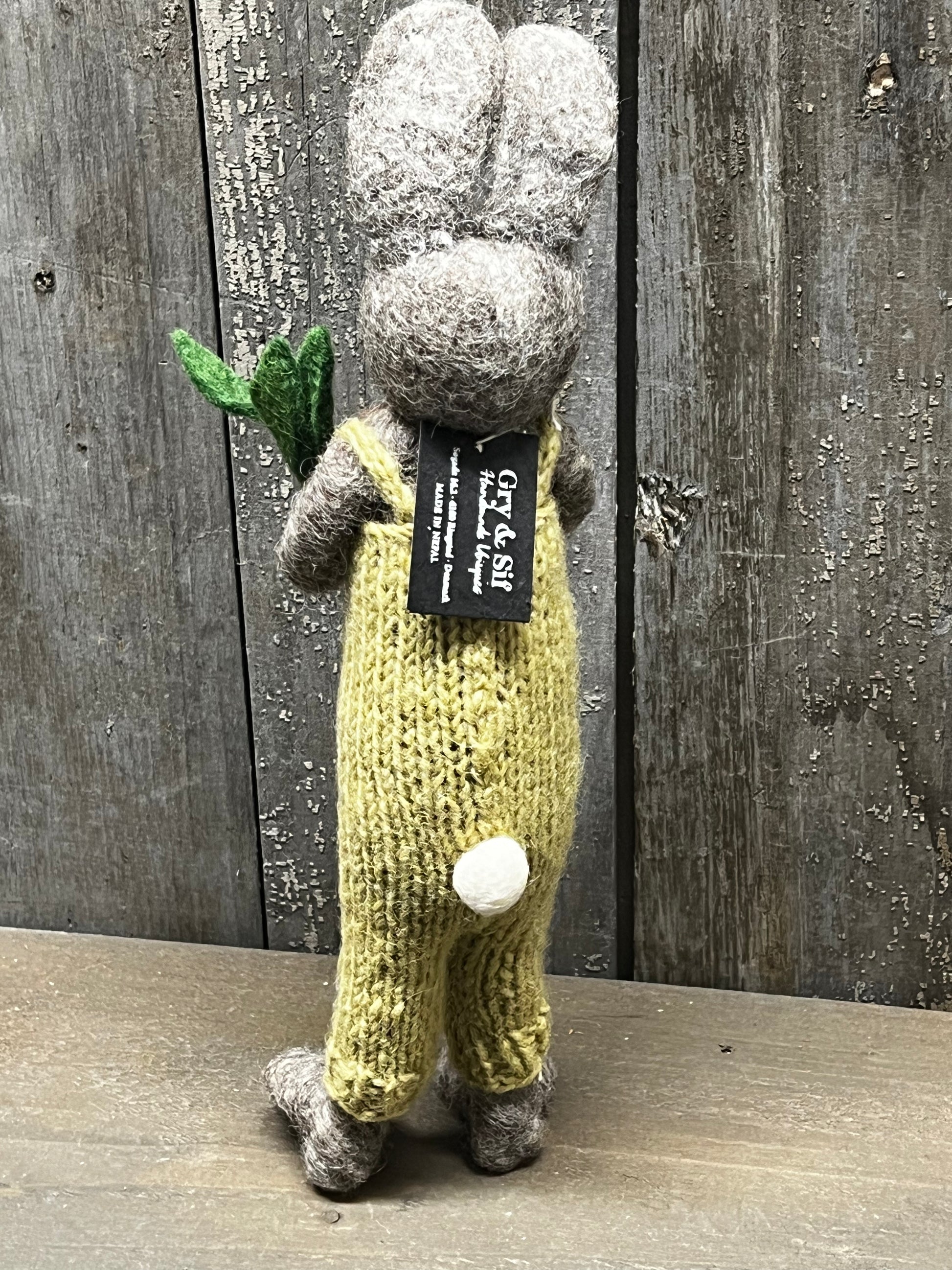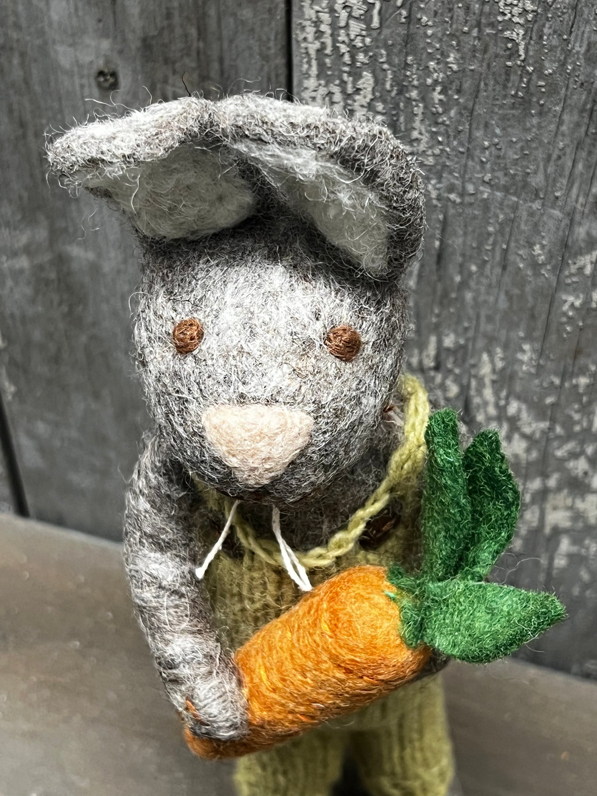 Bunny, Large Felted, GREY,SAGE PANTS & CARROT