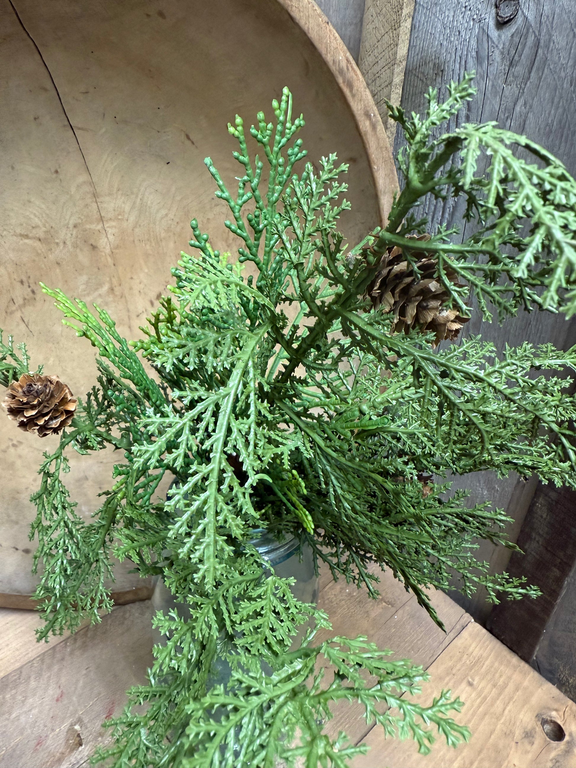 The Real Feel Texture and the combination of Cedar and Pine Cones. A favorite all winter long. Shown with the accent pieces also available.