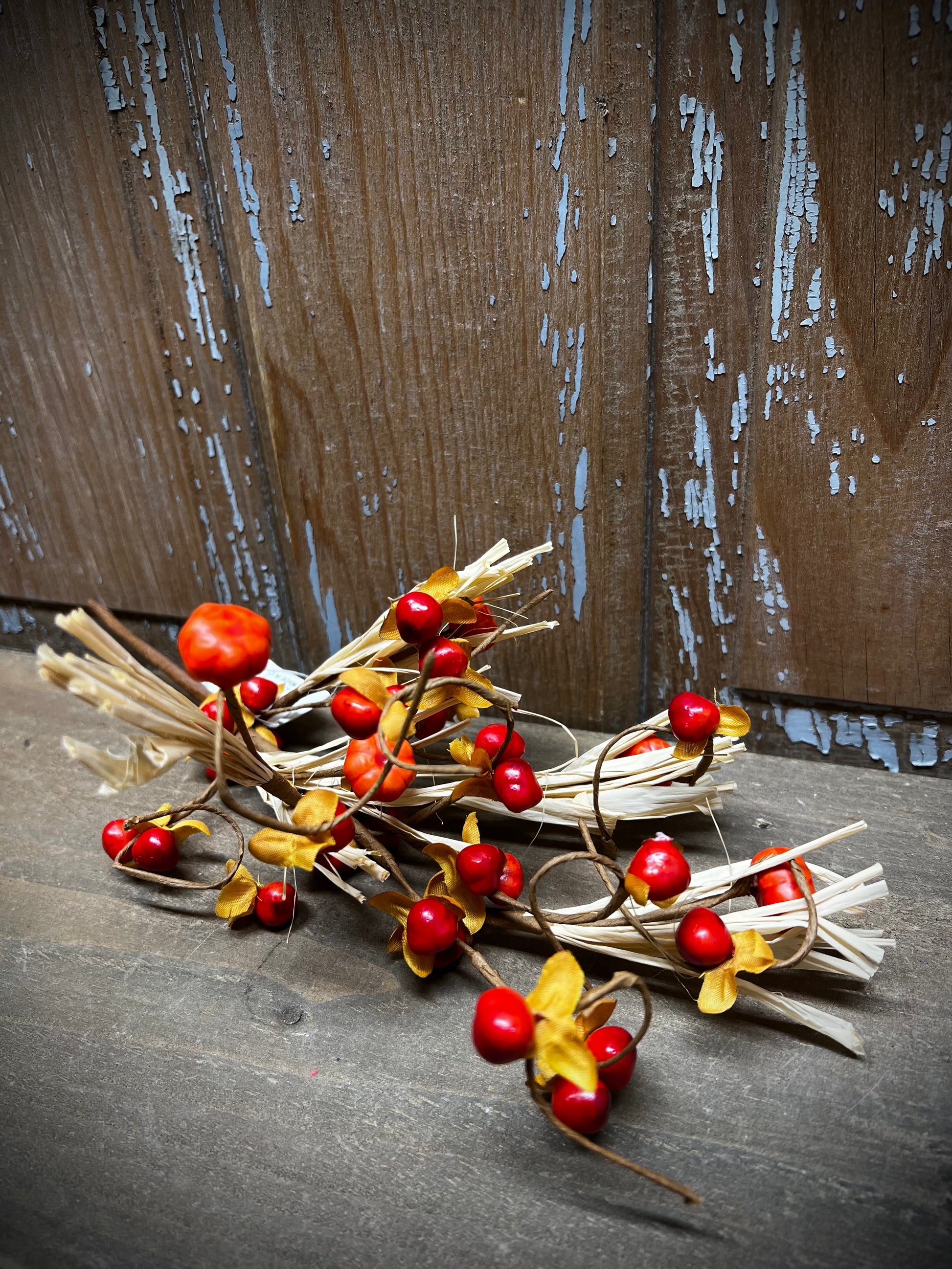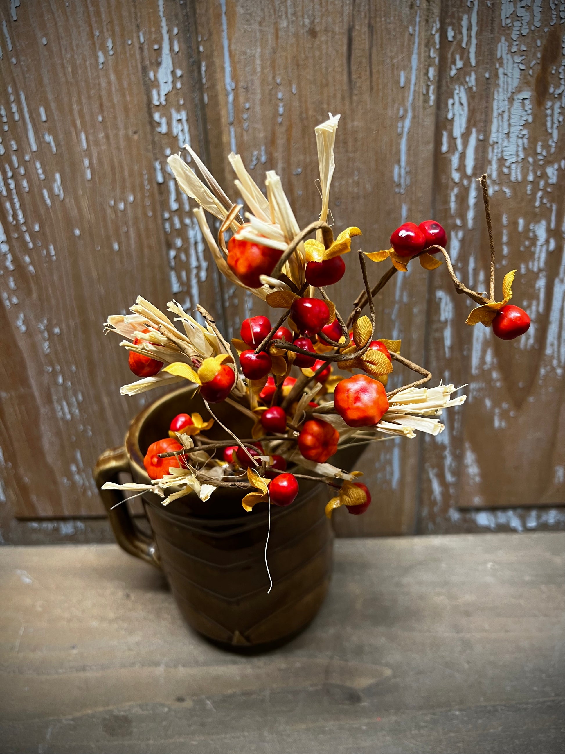 SPECIAL PRICE! The look of pumpkins, pods and berries mixed with "natural" straw raffia brings a bit of rustic charm to your home. Wired stems make it so easy to display it in so many ways.