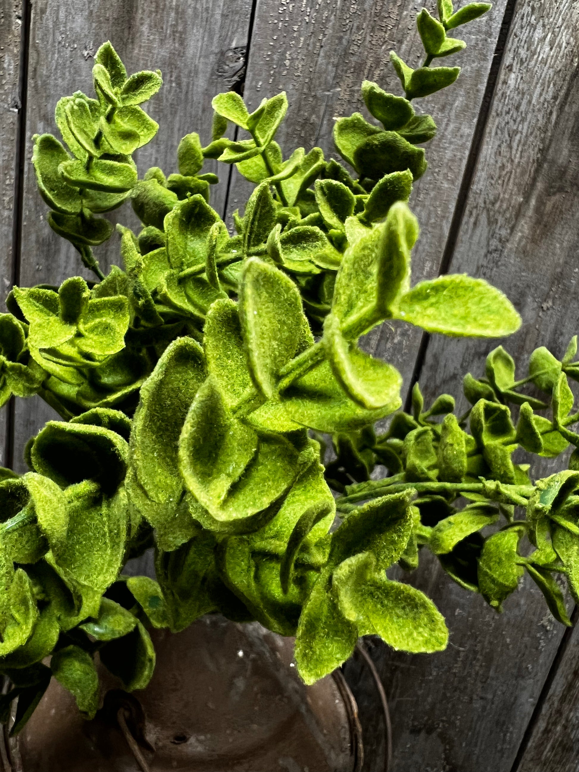 What a lovely pop of greenery. Coated in a mossy finish, they unique look of eucalyptus adds interest to baskets, crocks and arrangements.