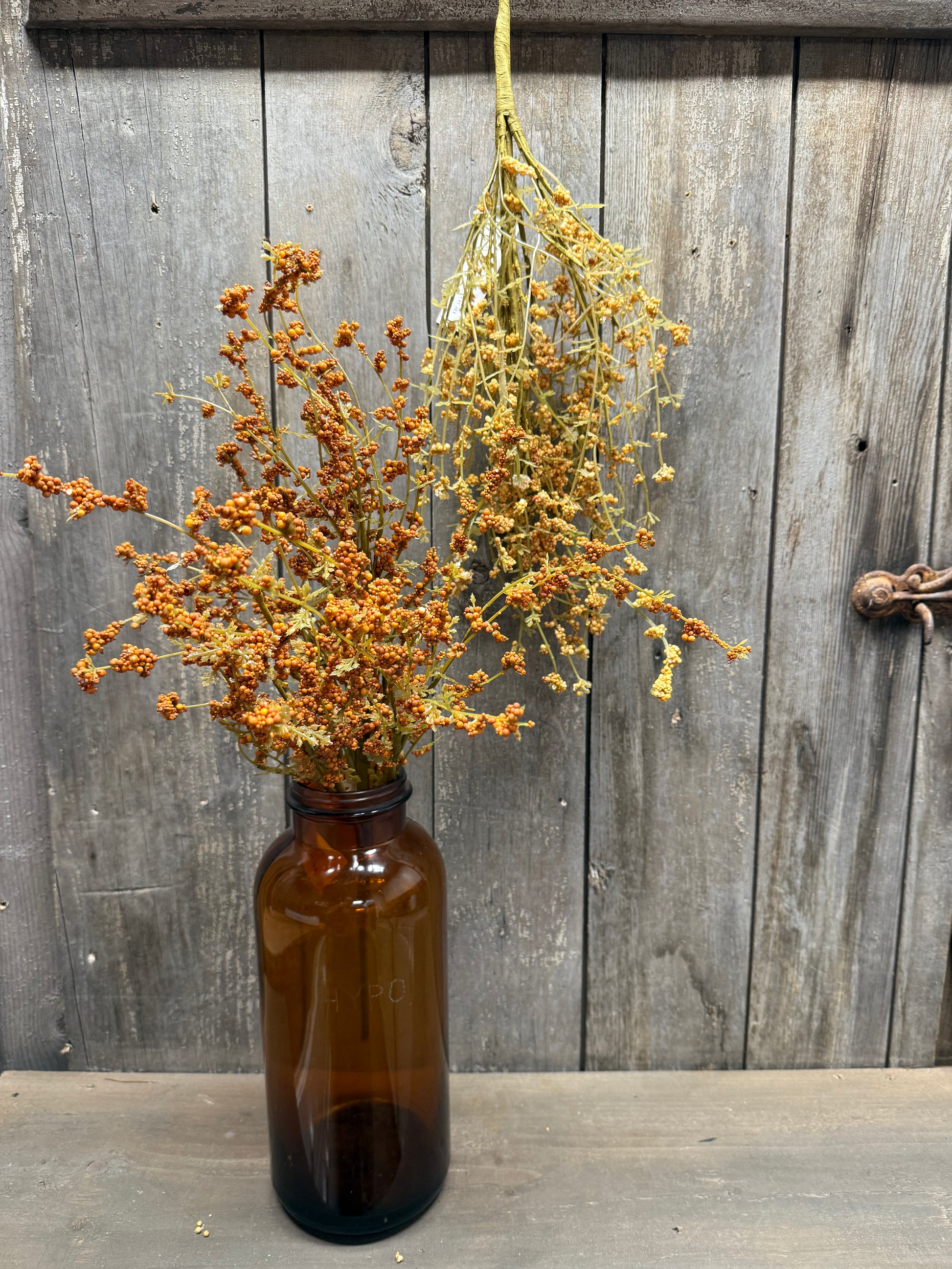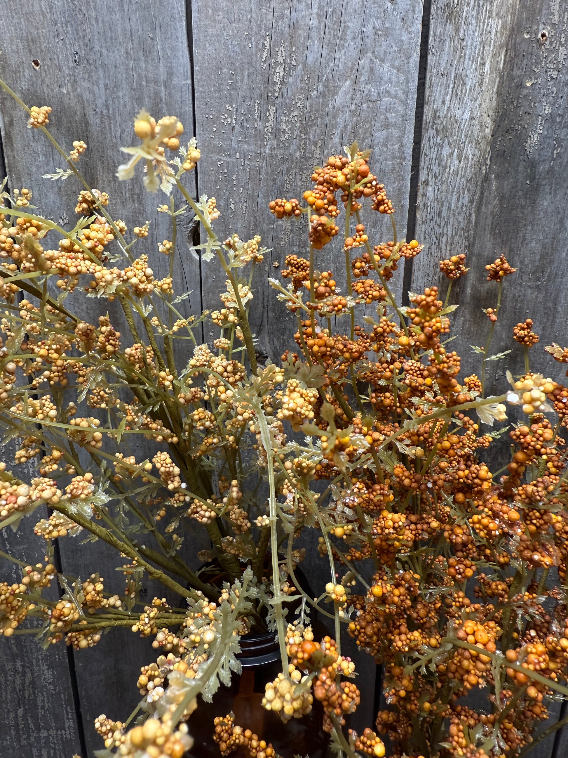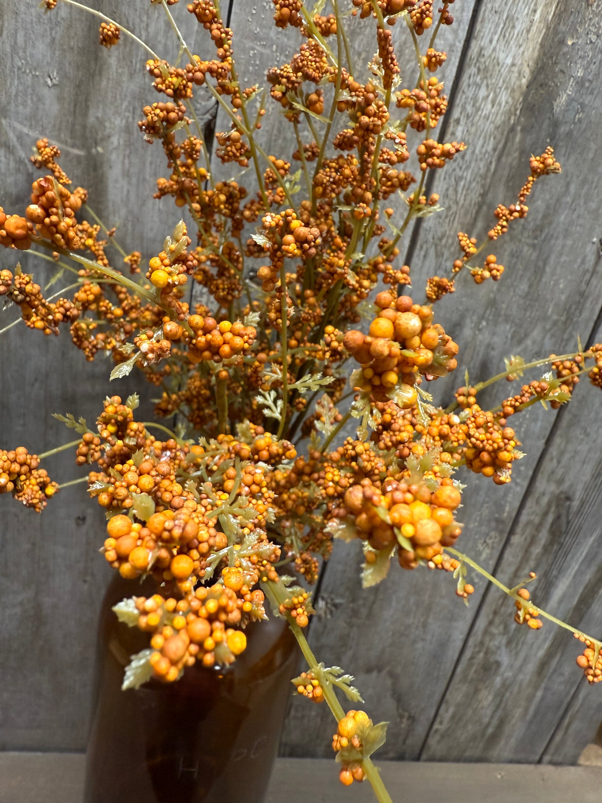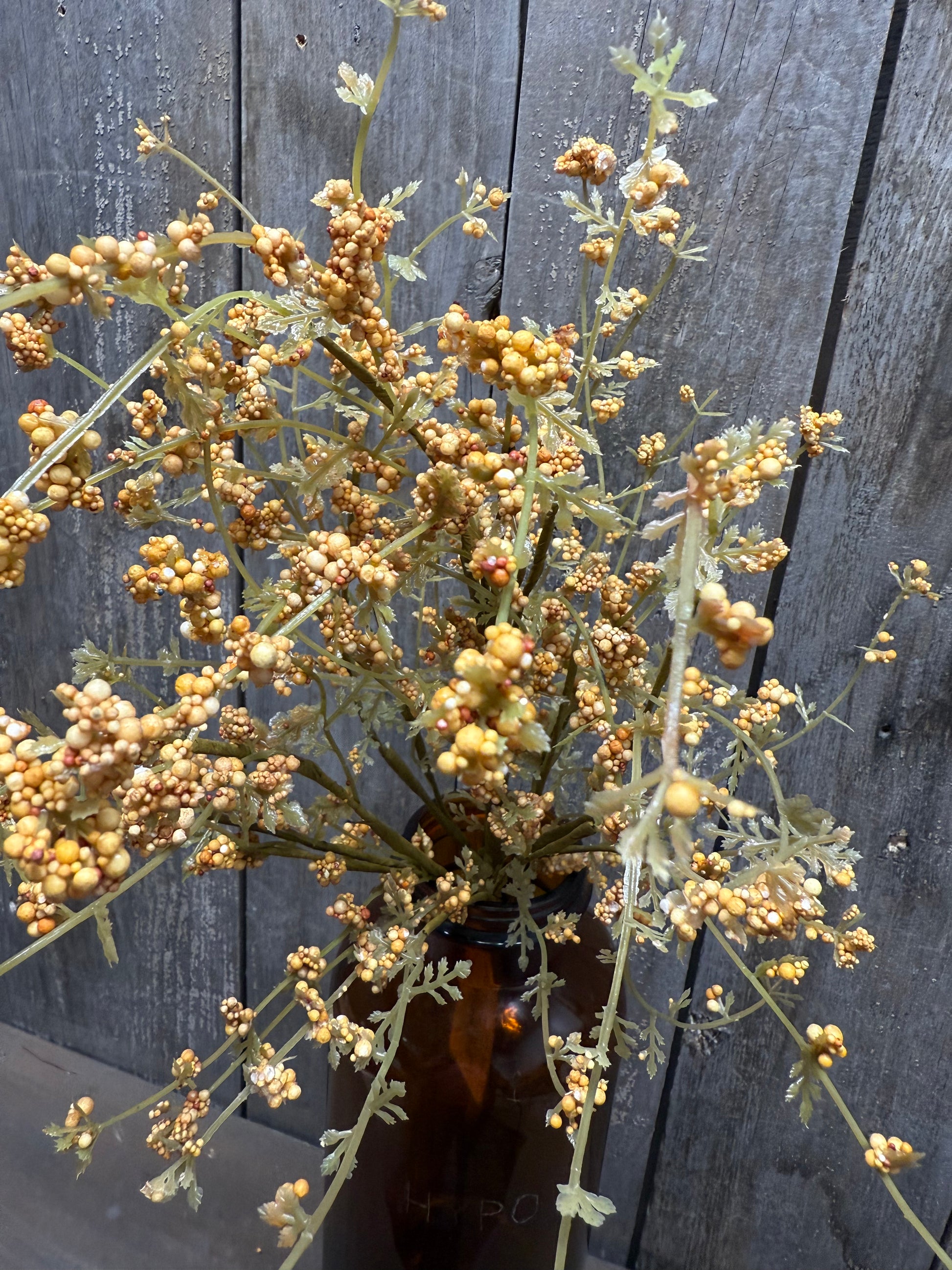 The subtle look of Autumn. Small clusters of foam berries make a big statement in this 22" floral bush. I love the look of it hanging as if it was "drying". Both colors are muted tones and won't compete yet are lovely enough to stand on their own. Measures 22" long. You choose the color.