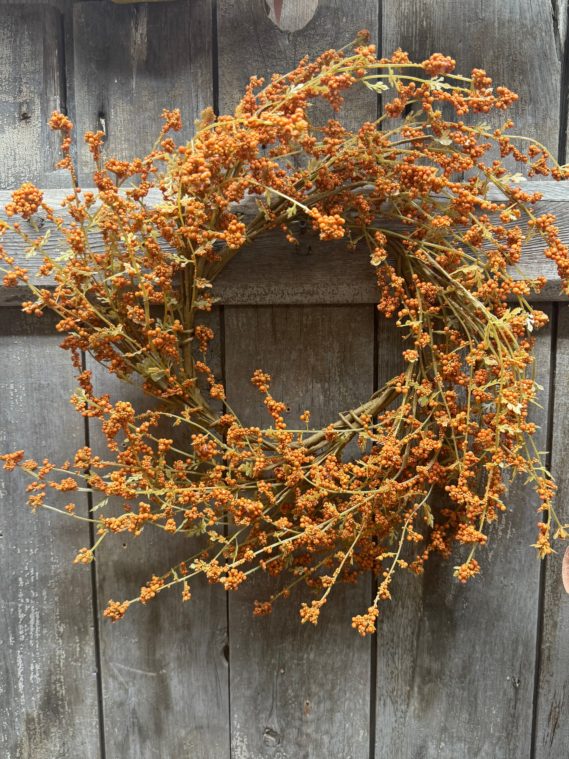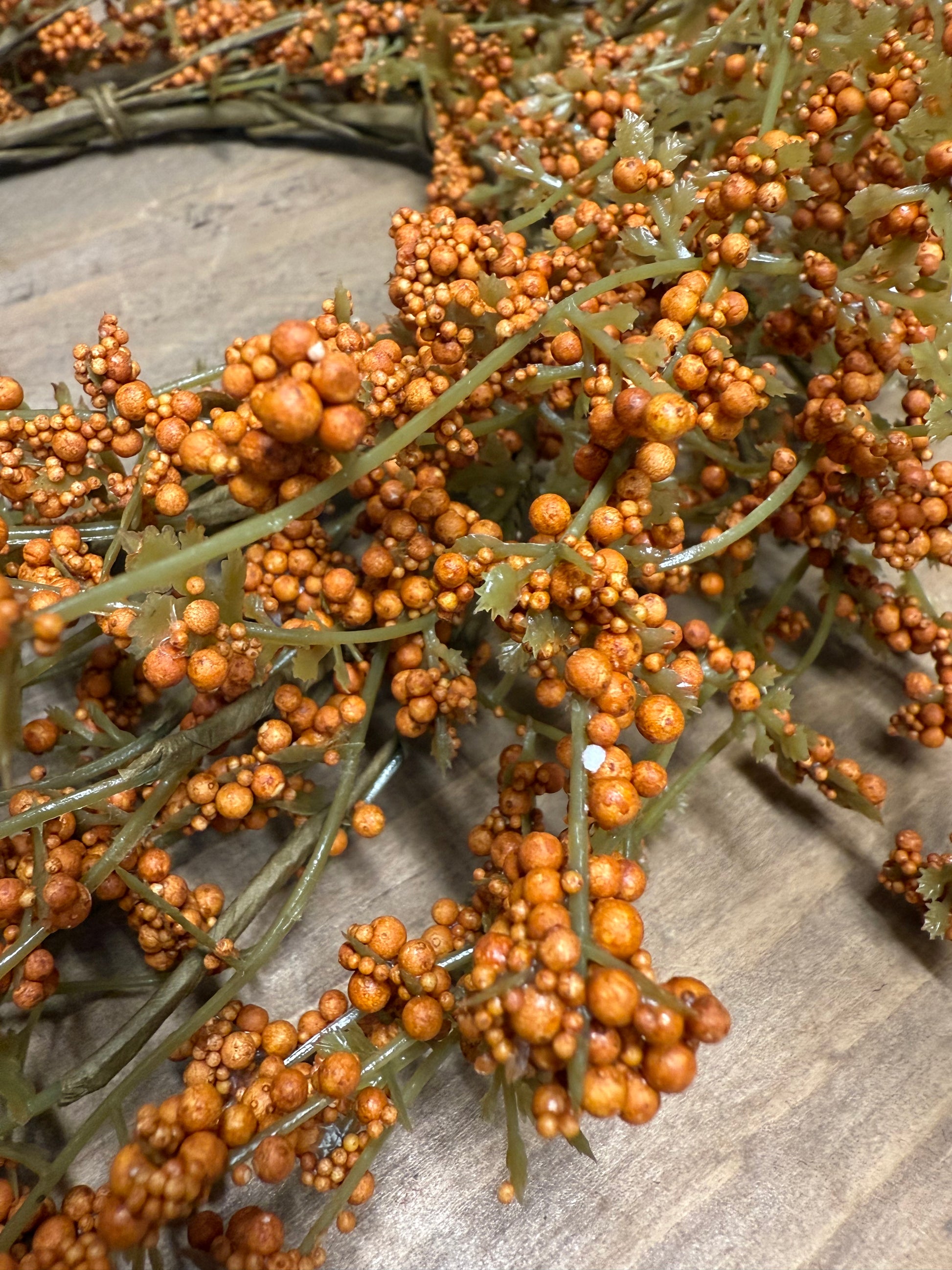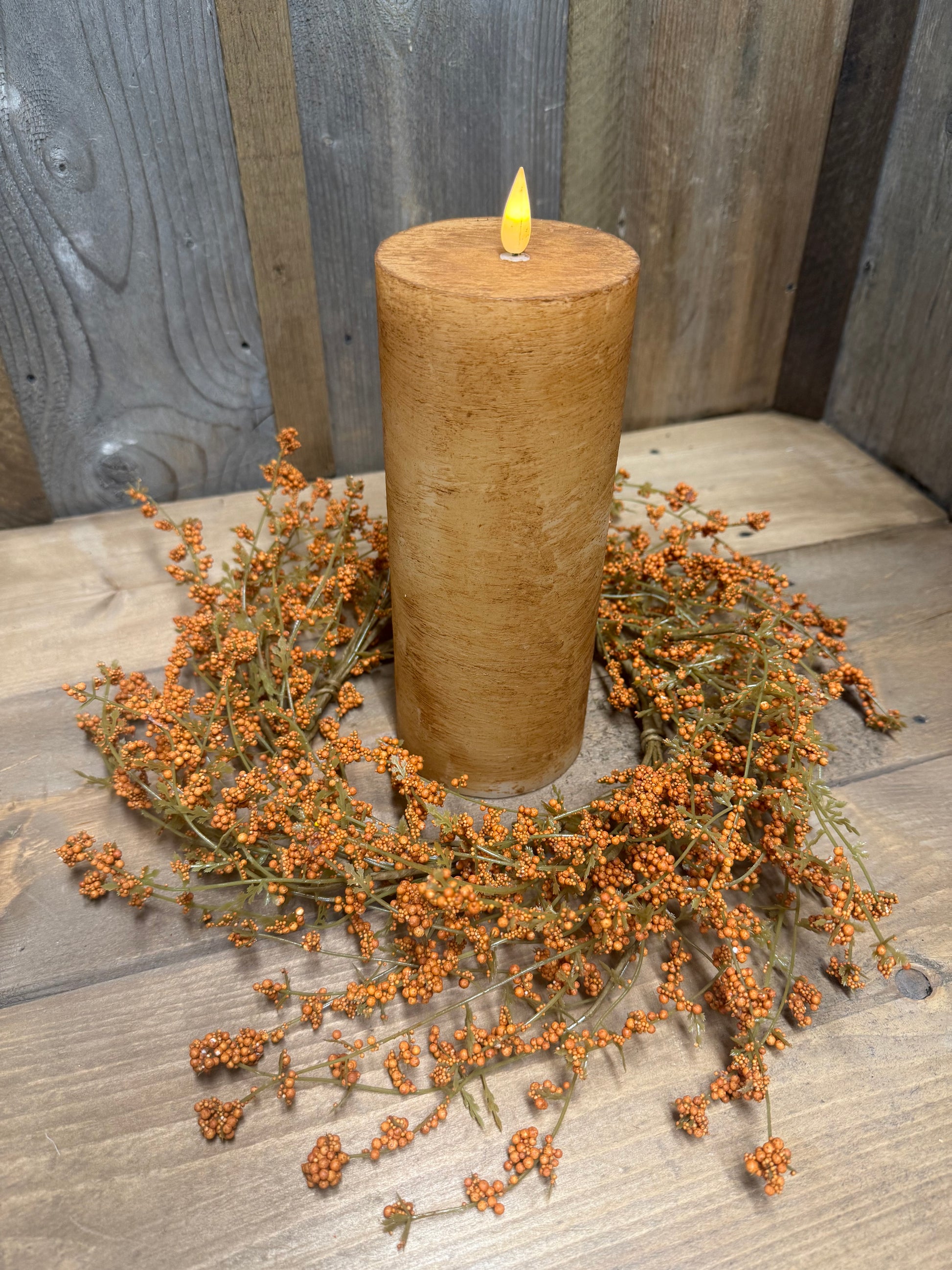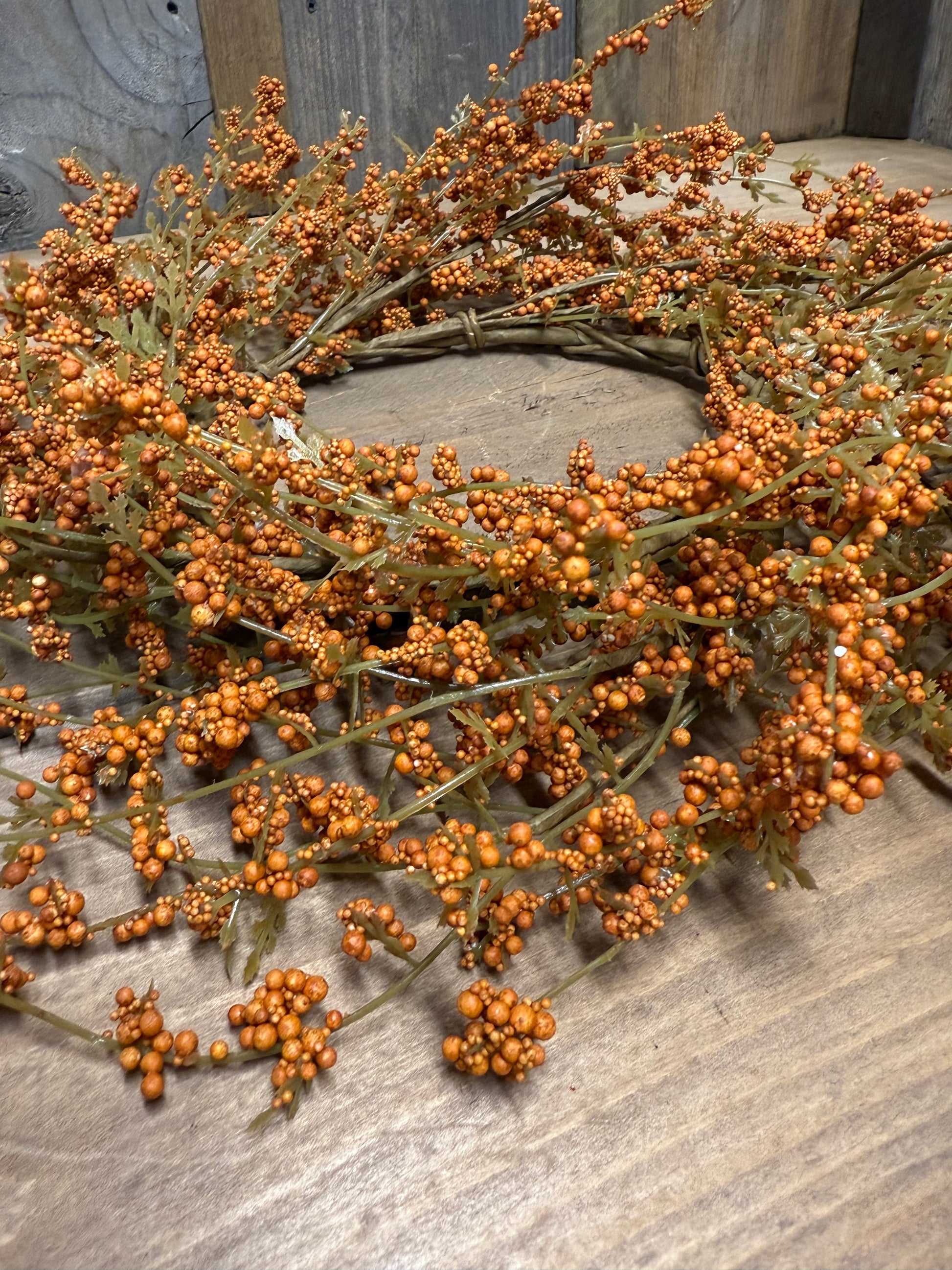 Rustic pumpkin colored berries adorn candles, bowls, pumpkins and even doors. Inside ring measures 6", 15" overall. Candle sold separately.