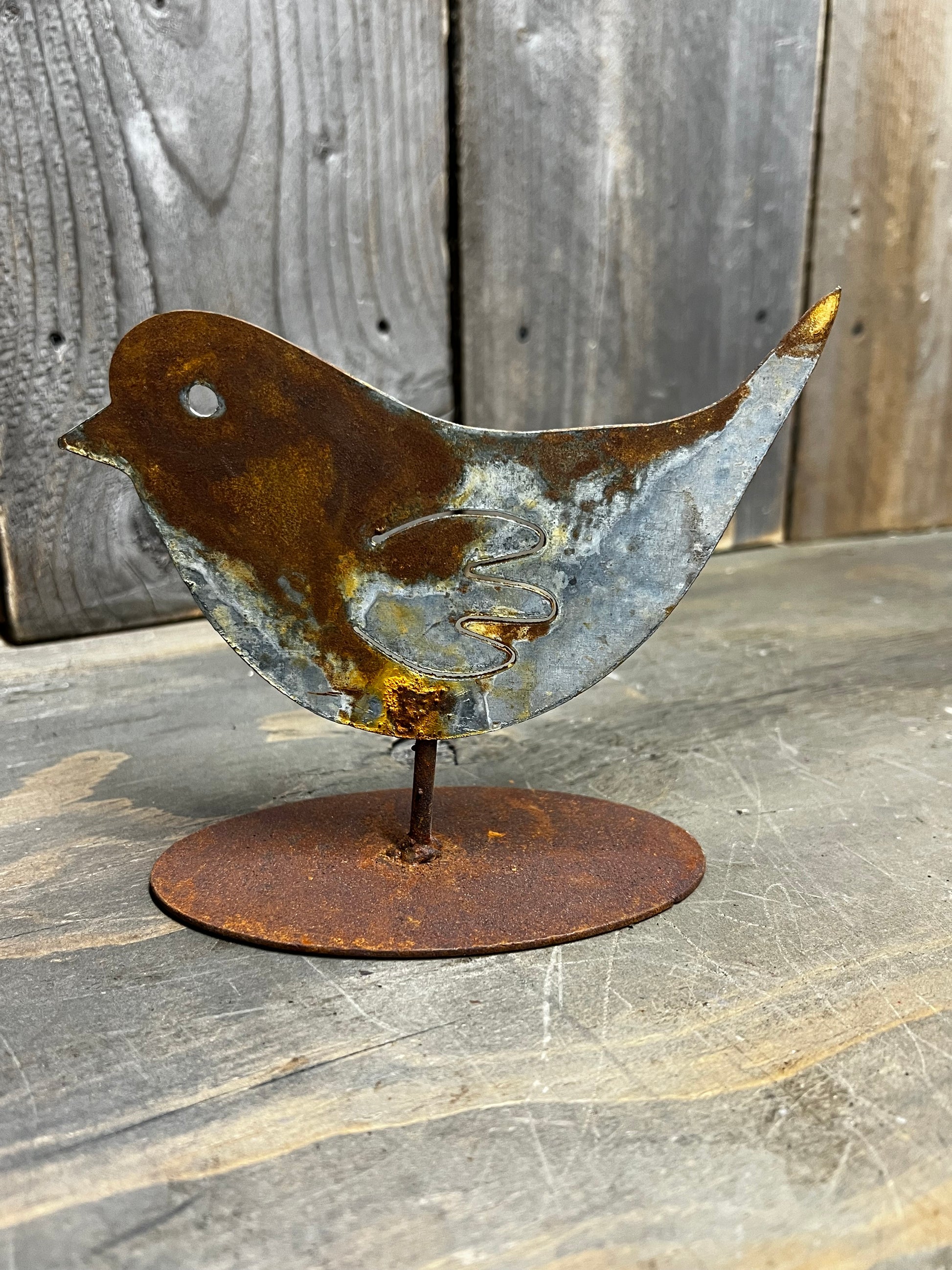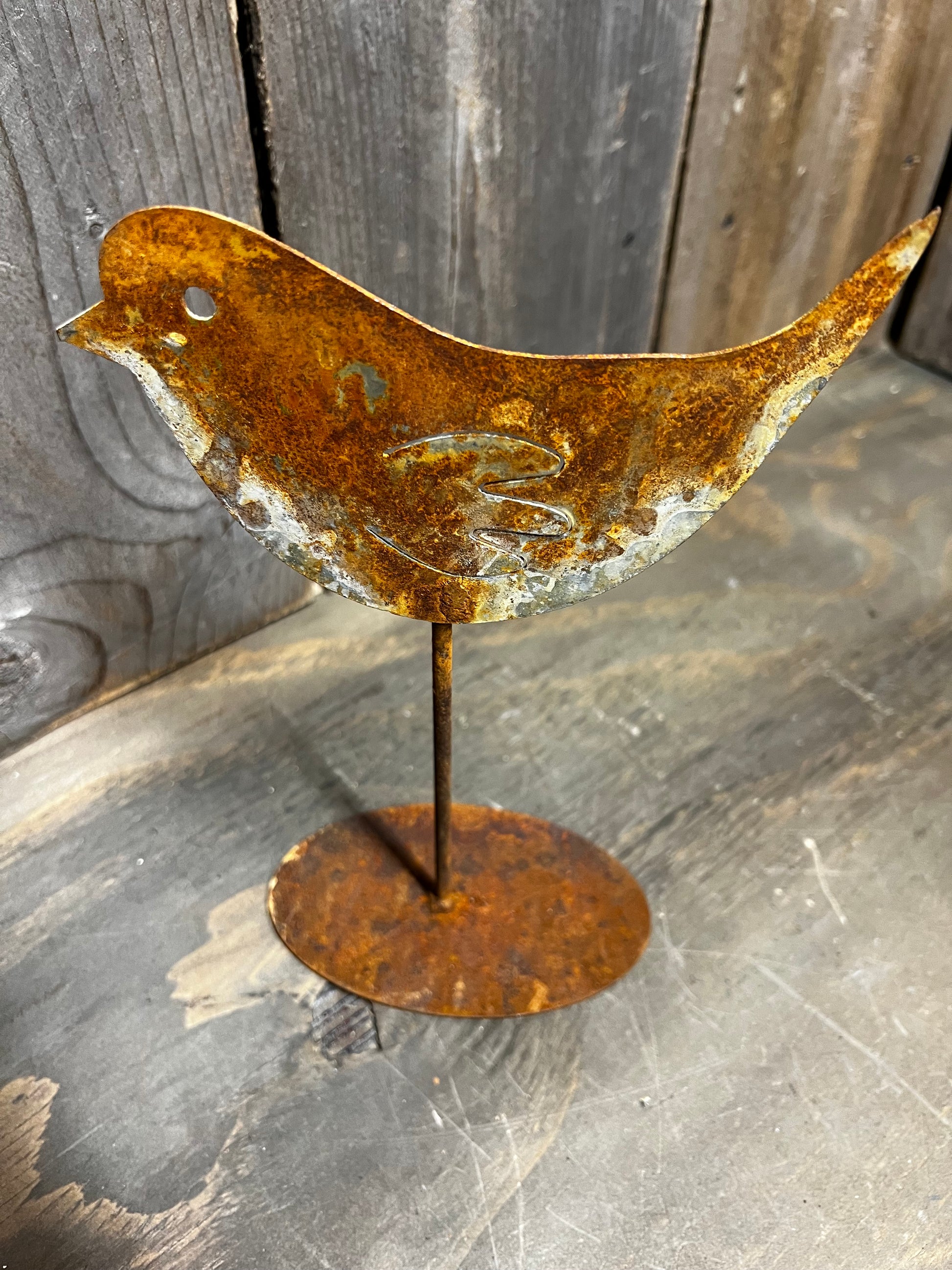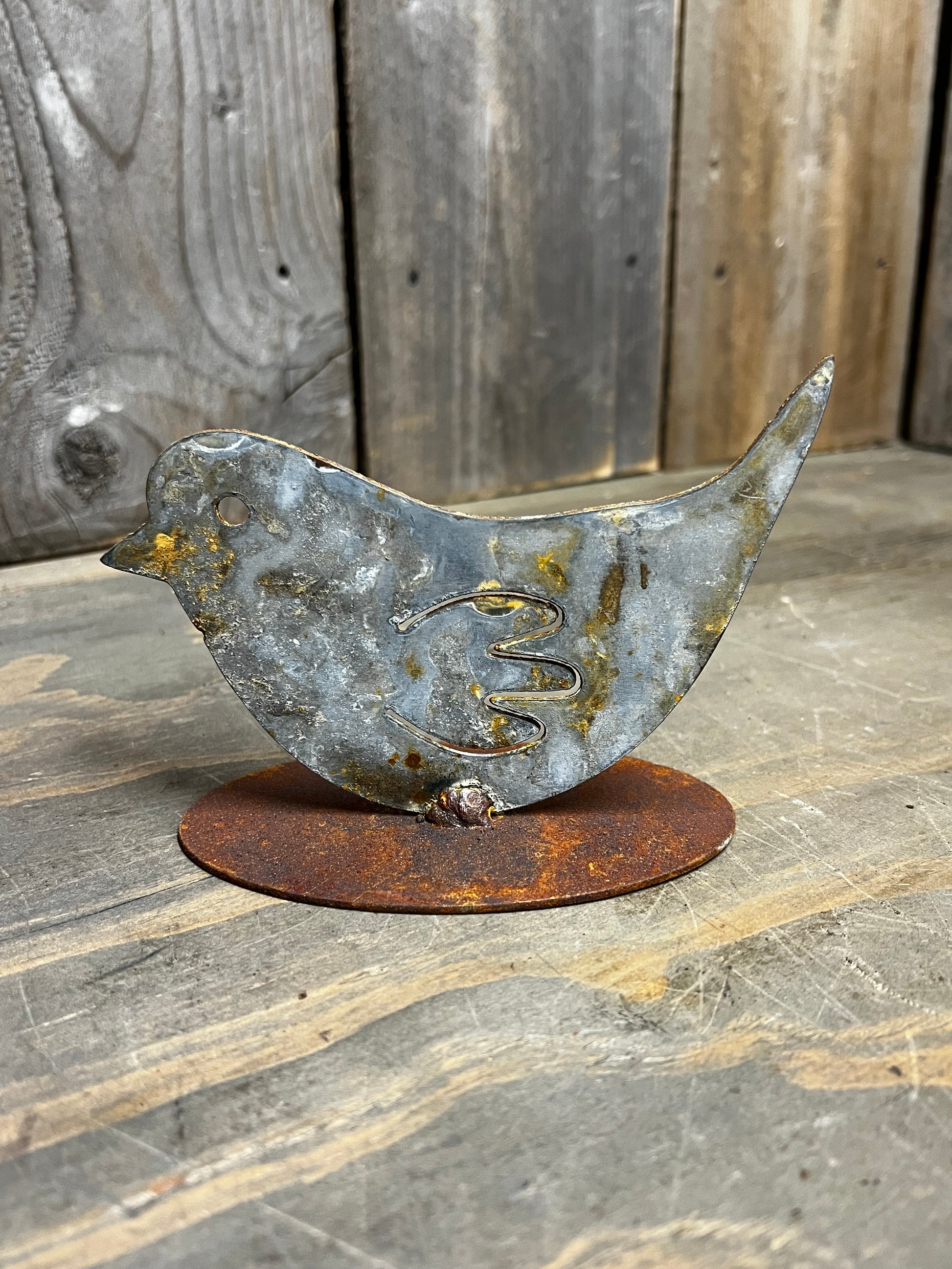 Handcrafted and rusty to the core! Each and everyone will be different and unique just to you. The amount of rust will vary from piece to piece; you may not receive the exact chick shown.