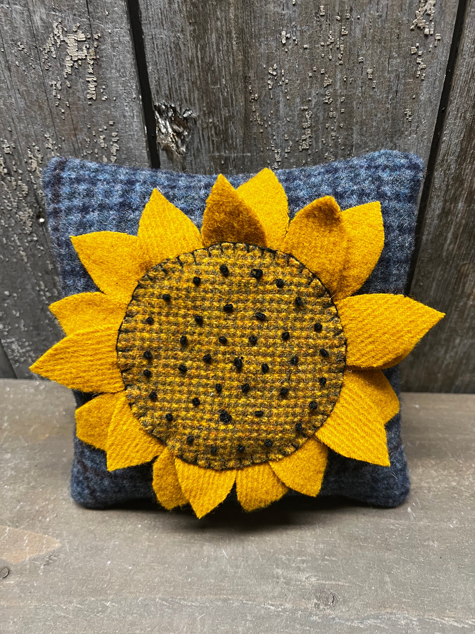 The kit includes the pre cut wool pieces and threads to make 3 adorable bowl filler pillows; one sunflower, one strawberry and one bee and hive mini pillow. There are simple instructions on the stitches used but you are welcome to make them in your own style. Pattern and Kit made by Janice Sonnen, Wooleyrugger. You may need a sewing machine to finish the pillows. NO POLY FIL INCLUDED.