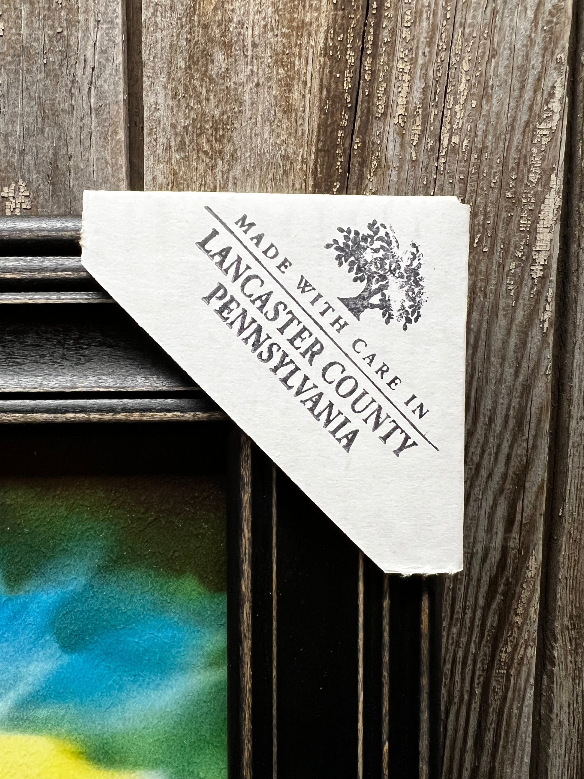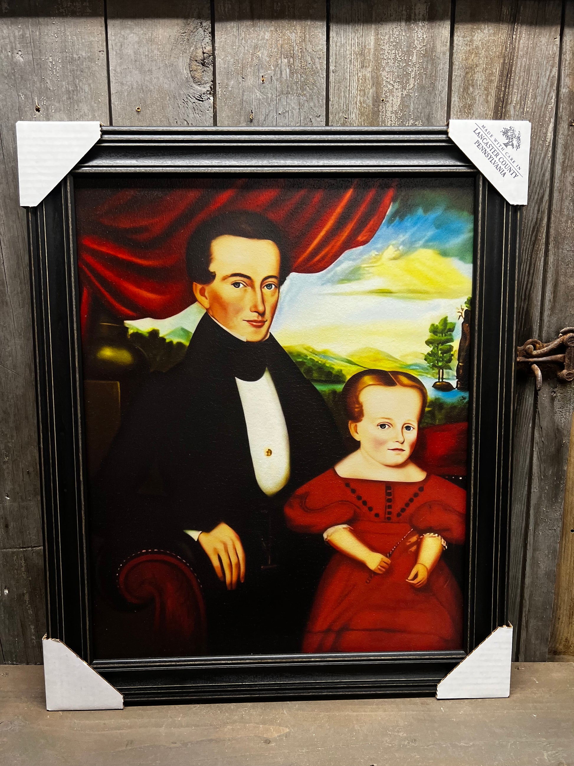 Our PA made framed art is lovely in quality and appearance. Professionally printed on canvas textured wood, the piece is given the look of a hand painted original. Made in Lancaster County, the ridge in the back of the frame makes for easy hanging. No glass. Protective covers protect the corners for shipping and are easily removed. Colonial Black Frame