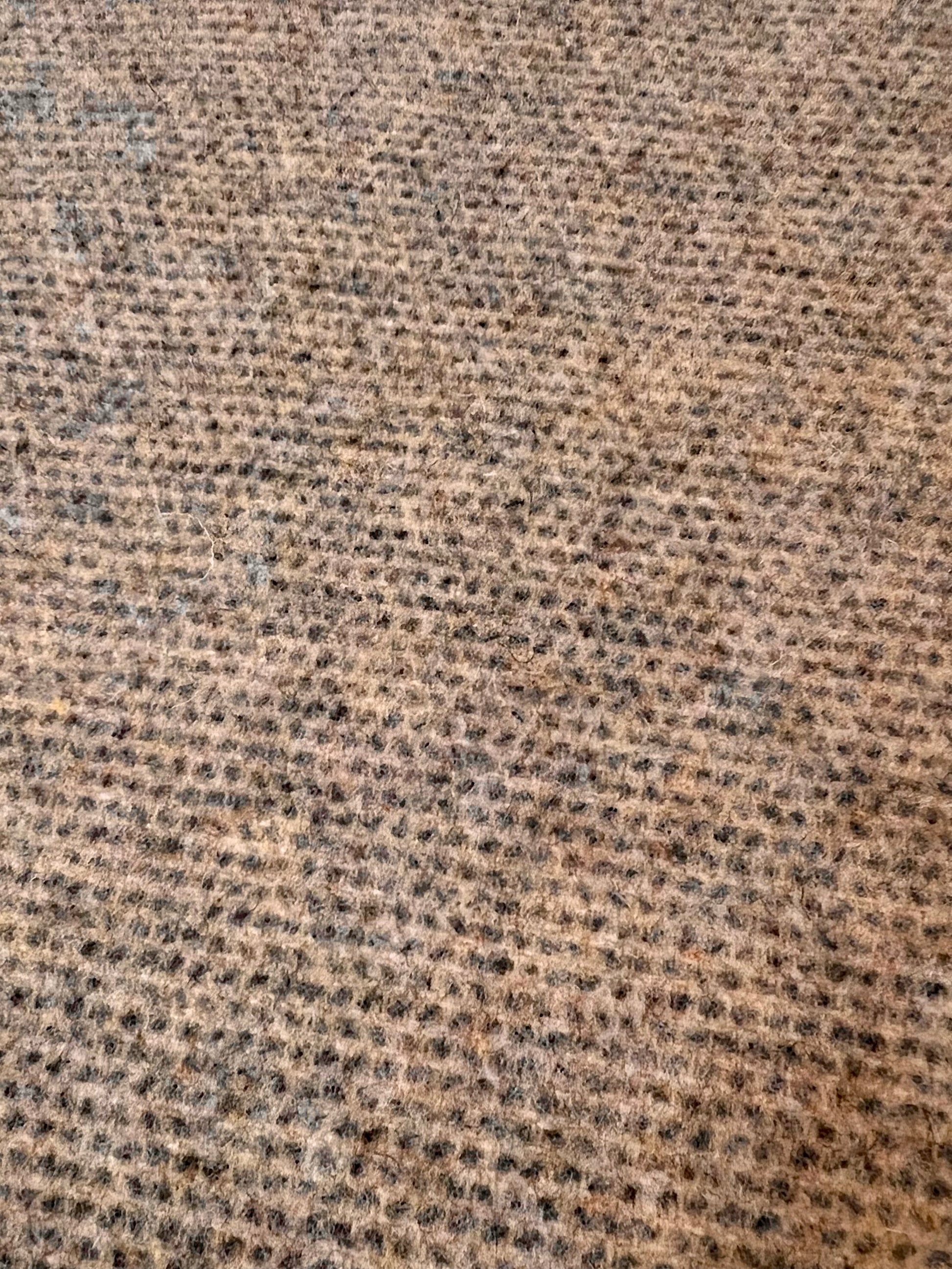 Pale peach wool that almost reminds me of flesh tones. Dyed on a patterned wool. Not much variation in color. Close up of pattern also shown.