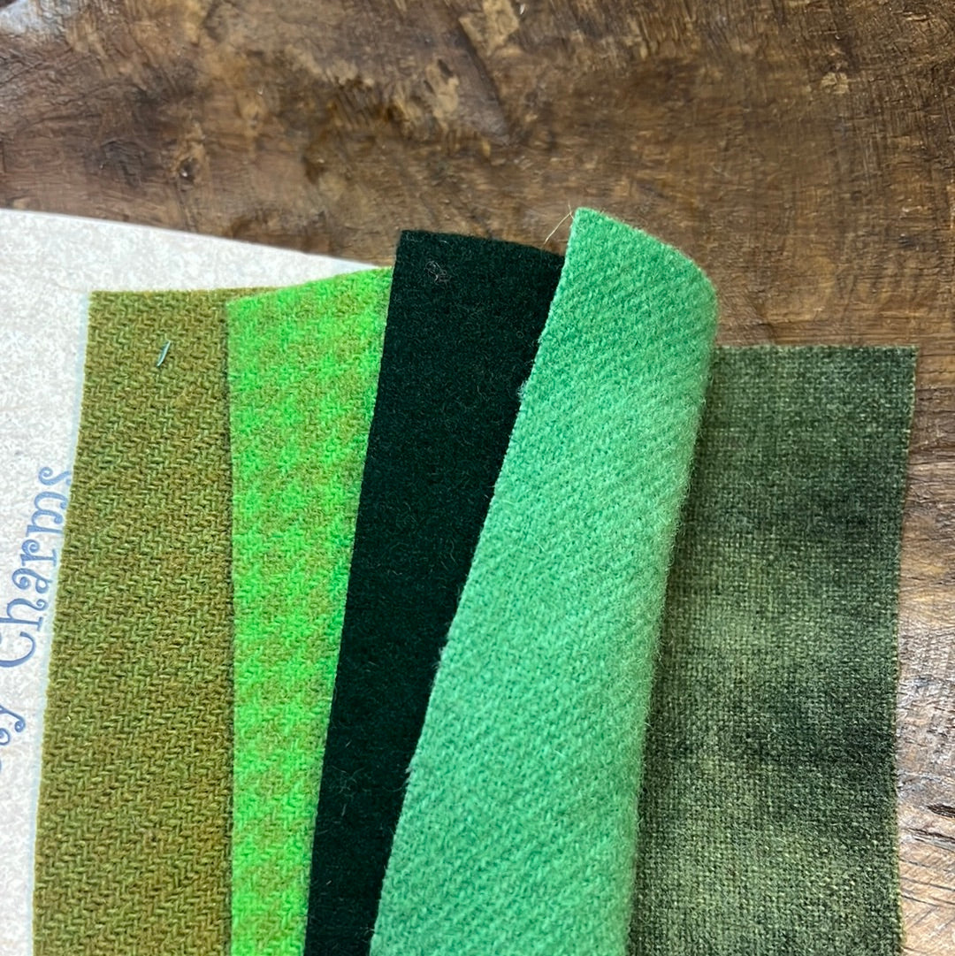 Wooly Charm Pack of 5...5" squares. You will receive one each of 5 coordinating patterns/solids. Perfect for small projects!