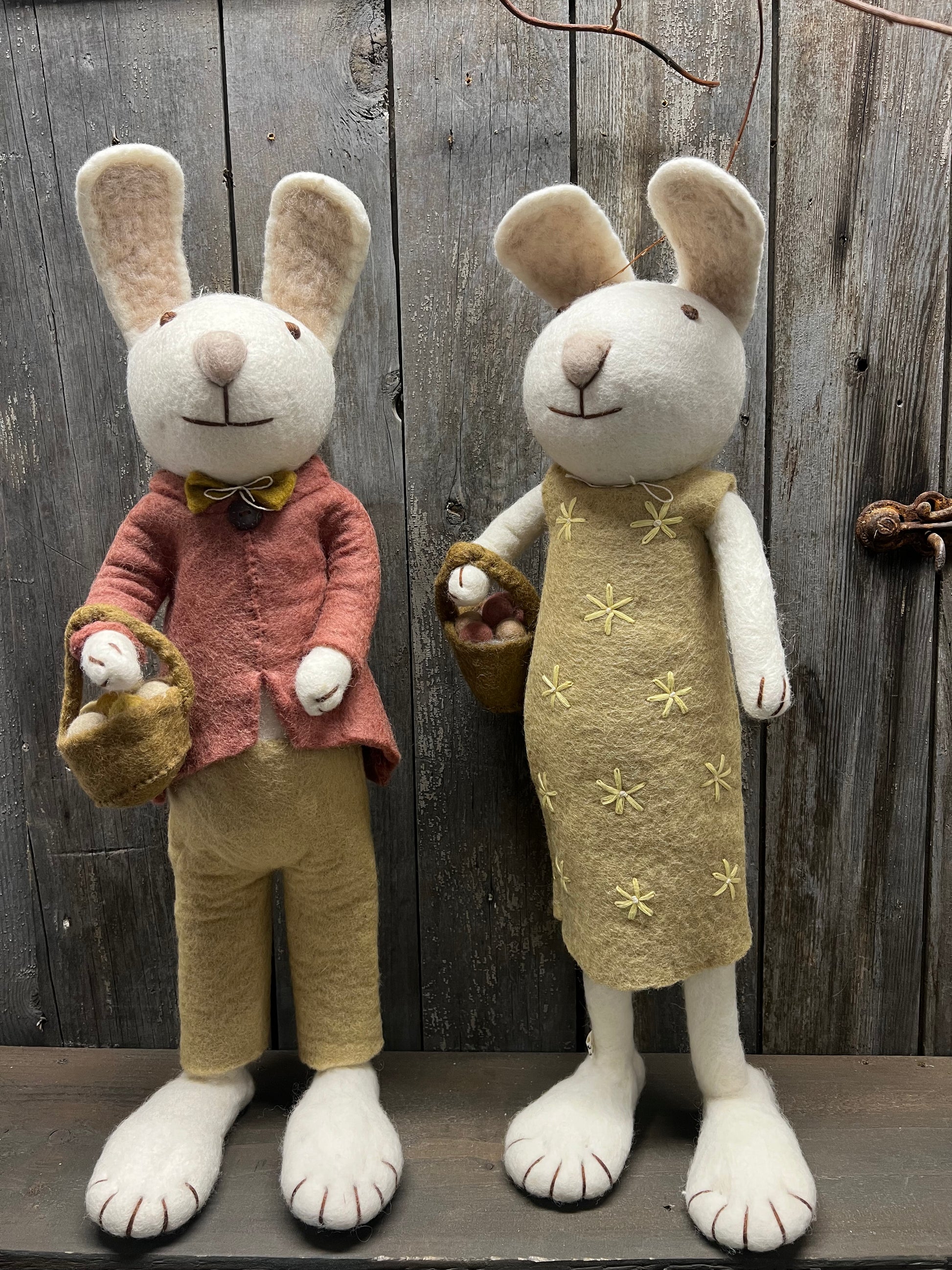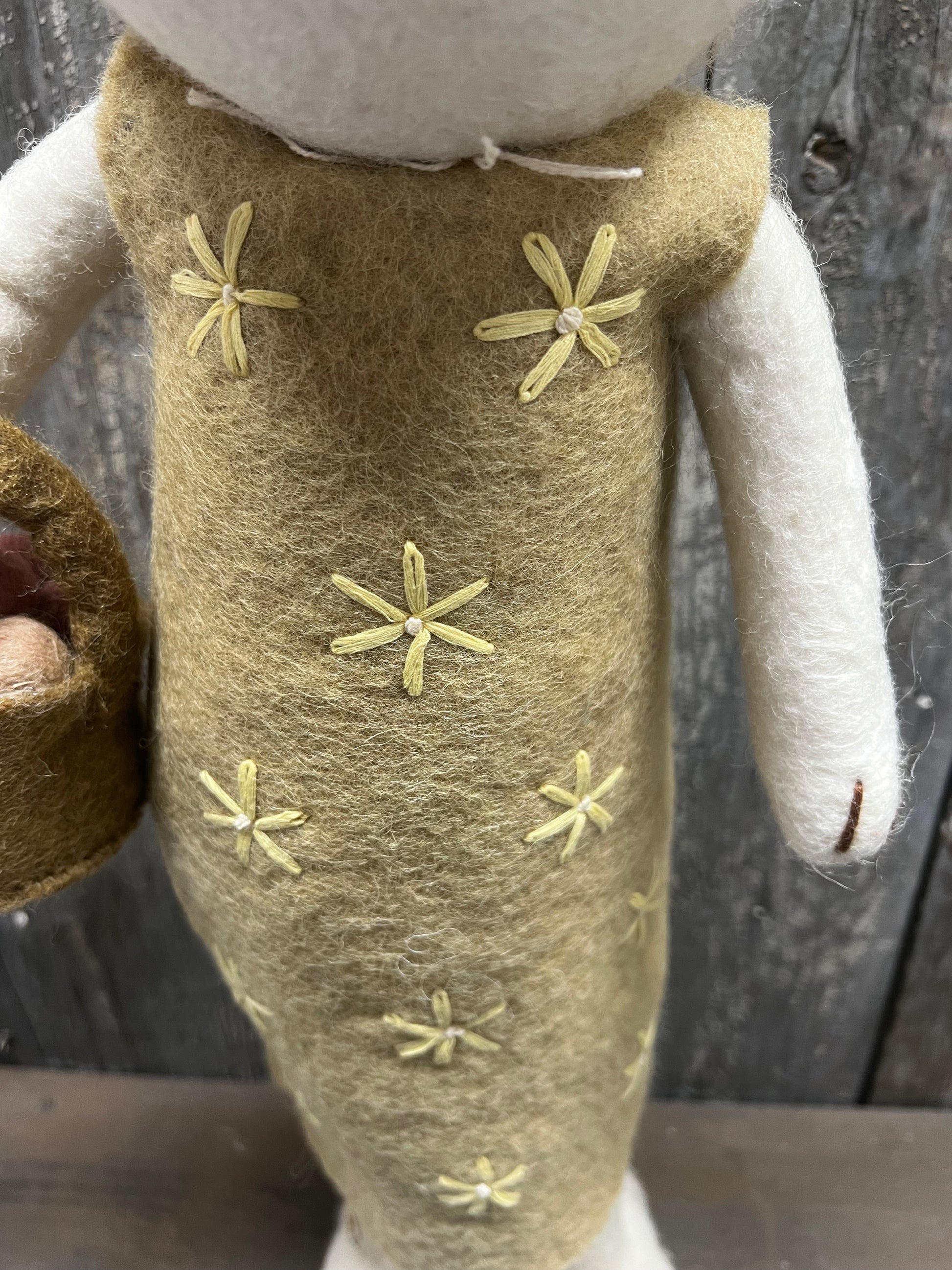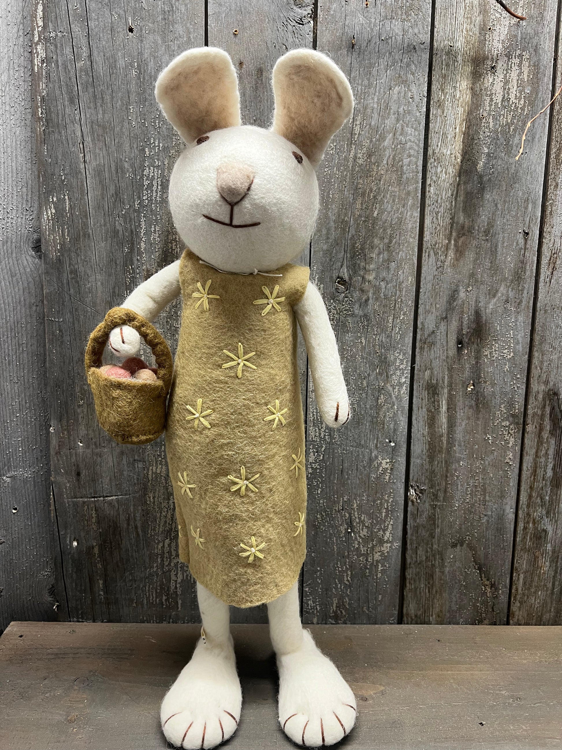 Bunny, XL Felted, WHITE W/YELLOW DRESS & BASKET OF EGG