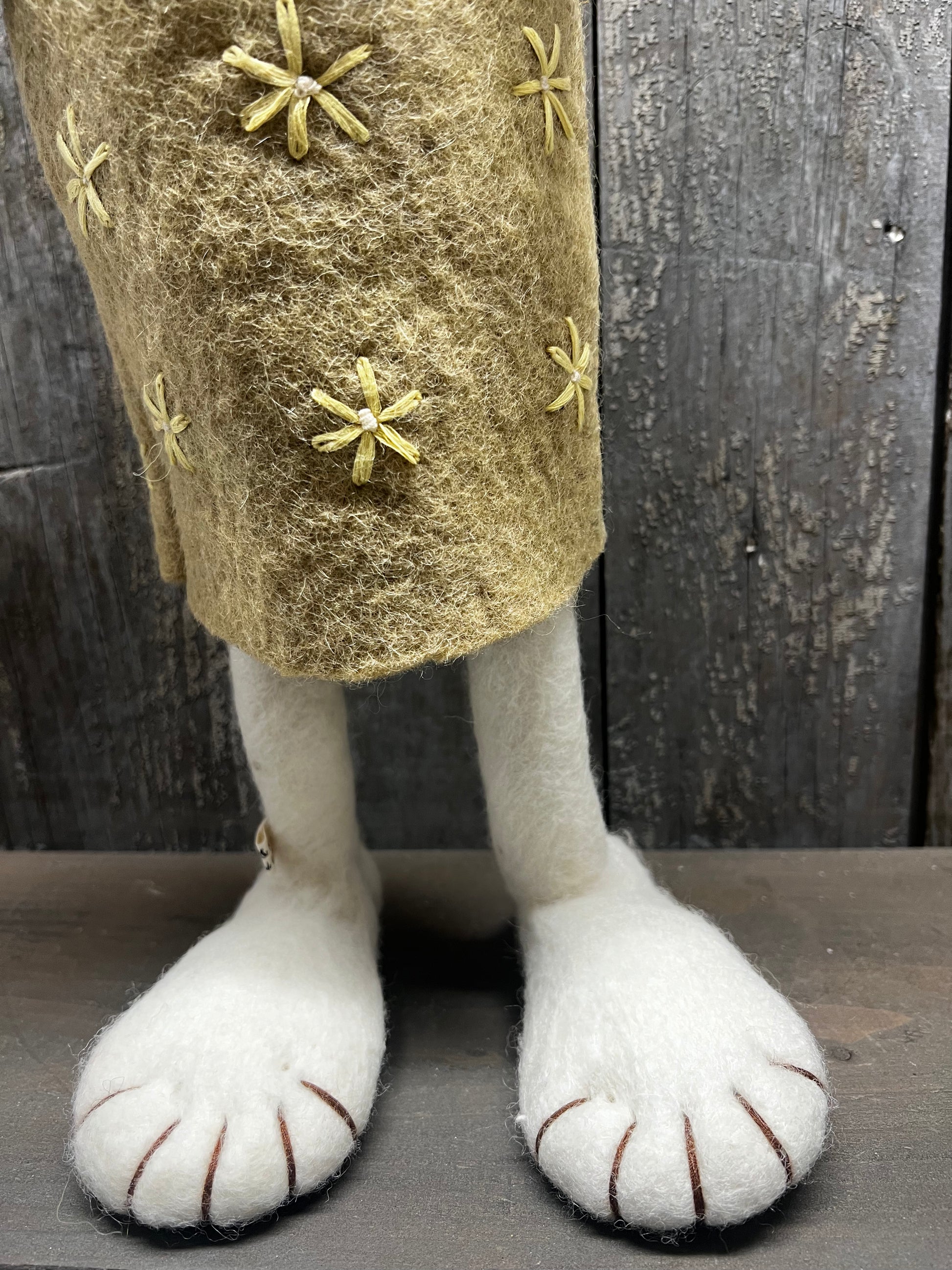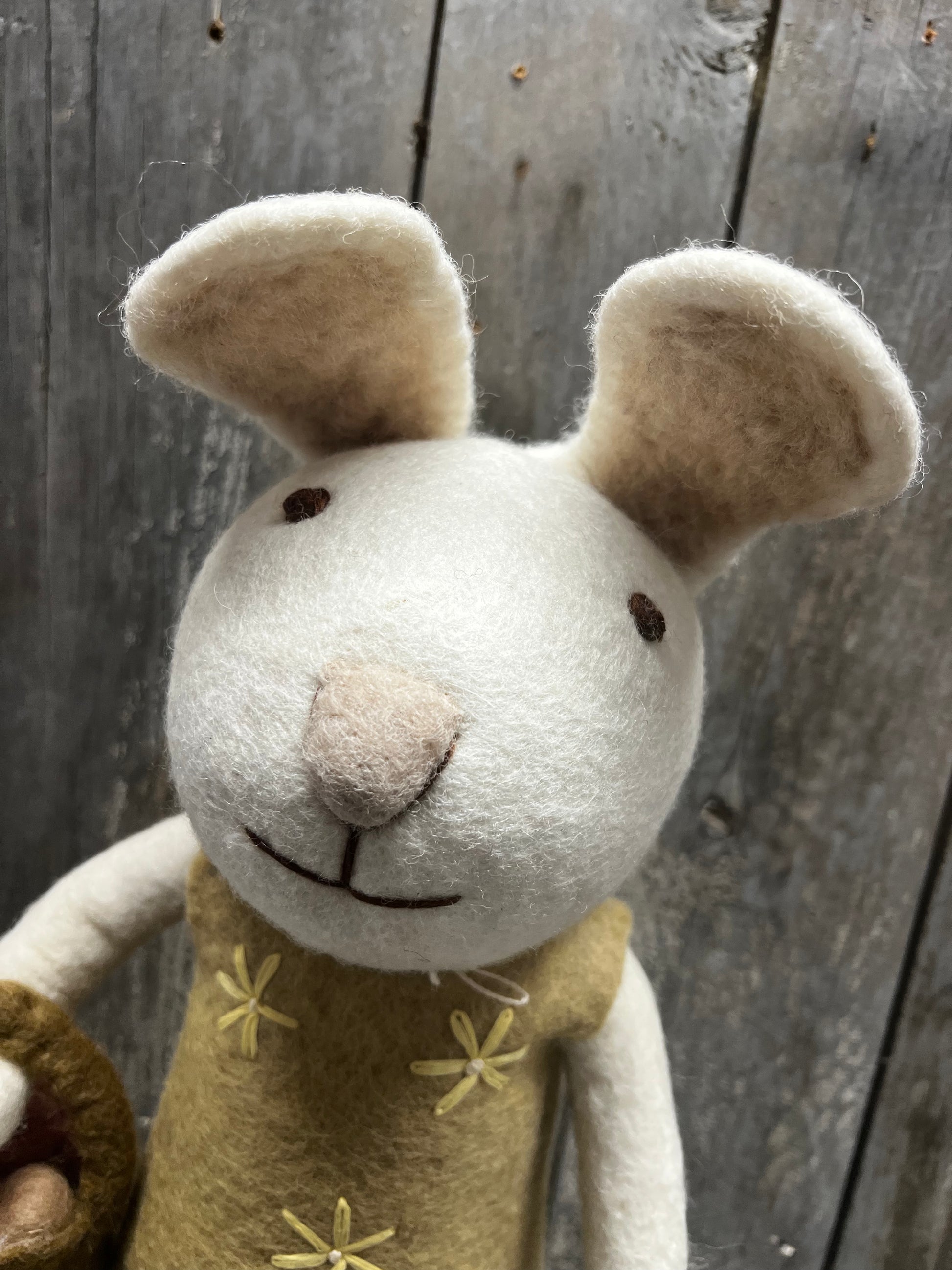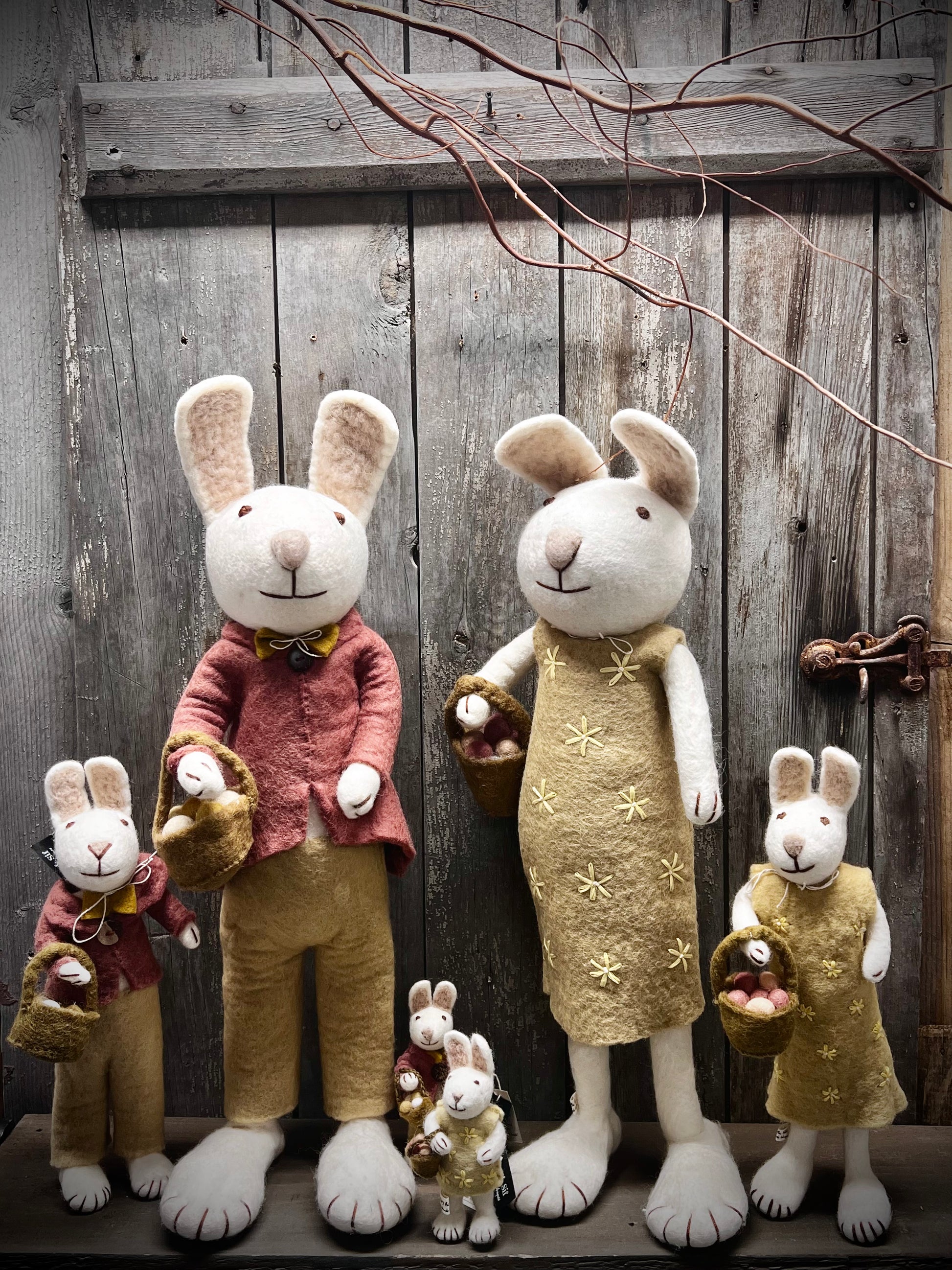 Bunny, XL Felted, WHITE W/YELLOW DRESS & BASKET OF EGG