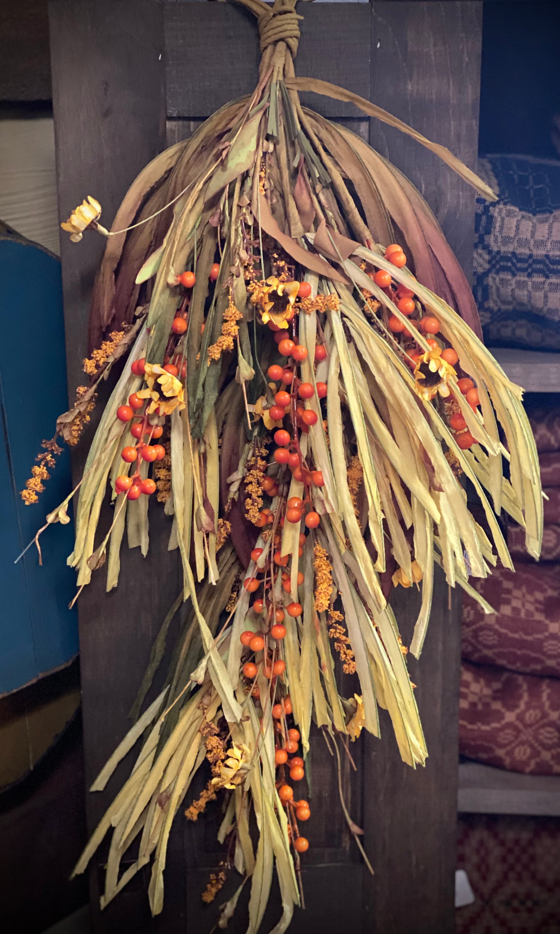 Grasses, berries and mini sunflowers are all found in this Fall swag.. 24" long...