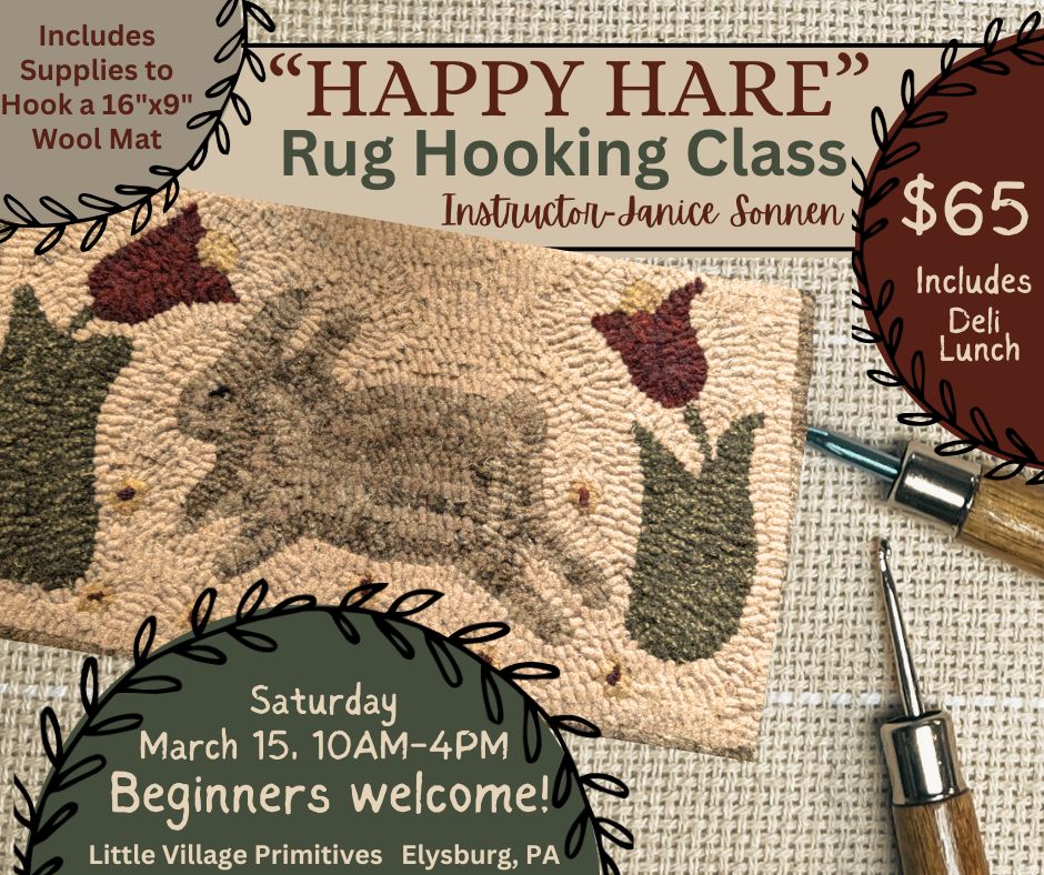 Class, 3/15, Rug Hooking, HAPPY HARE