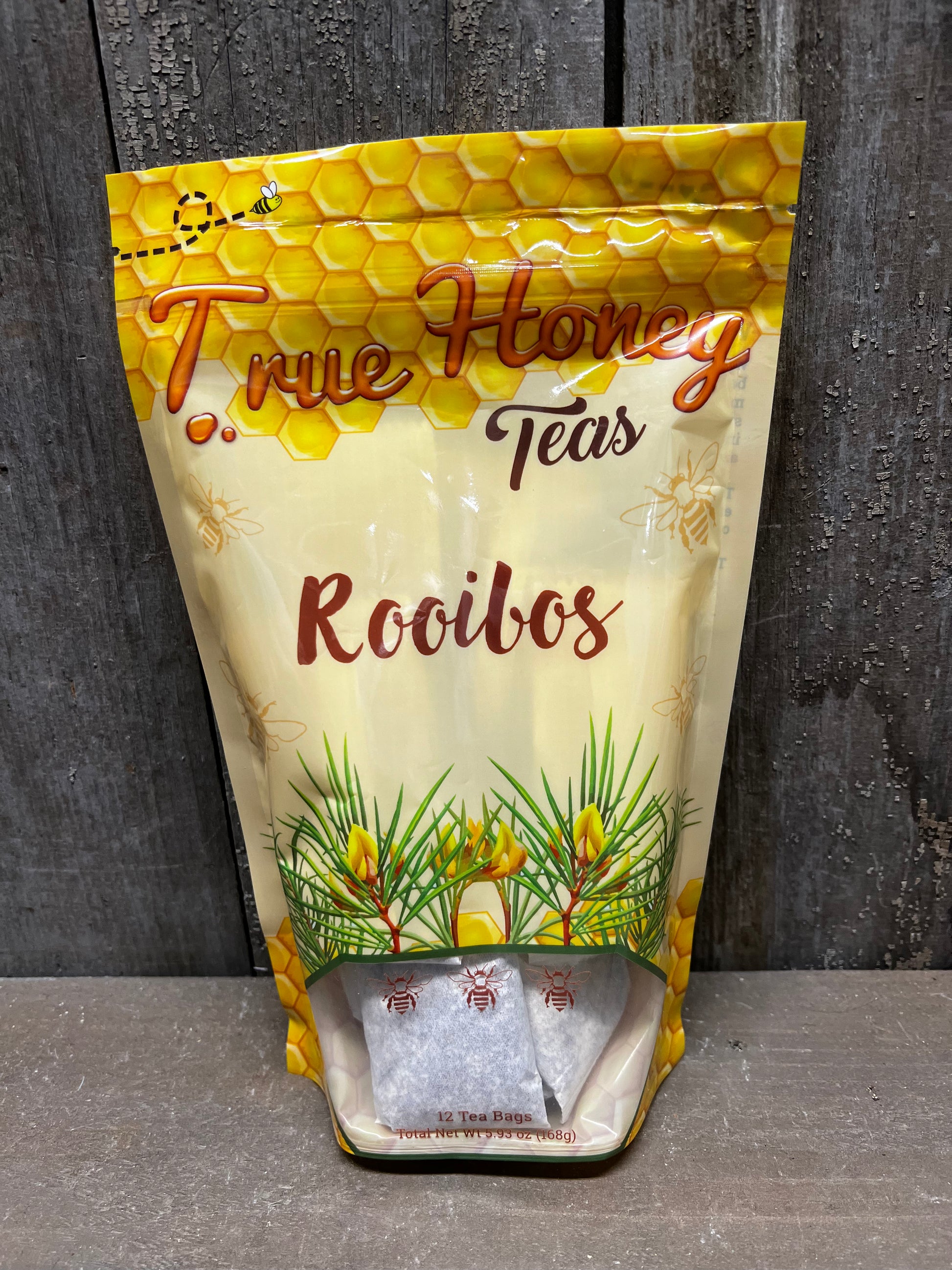 True Honey Teas Rooibos is from South Africa and is one of the healthiest teas in the world! Rooibos has a sweet, delicate and earthy flavor which perfectly pairs with our honey granules. Rooibos means red bush and comes from a plant in South Africa - naturally caffeine free. Rooibos is rich in antioxidants and anti-inflammatory properties, high in vitamin C and minerals. Soothing, sweet, healthy - enjoy this perfectly balanced flavor!