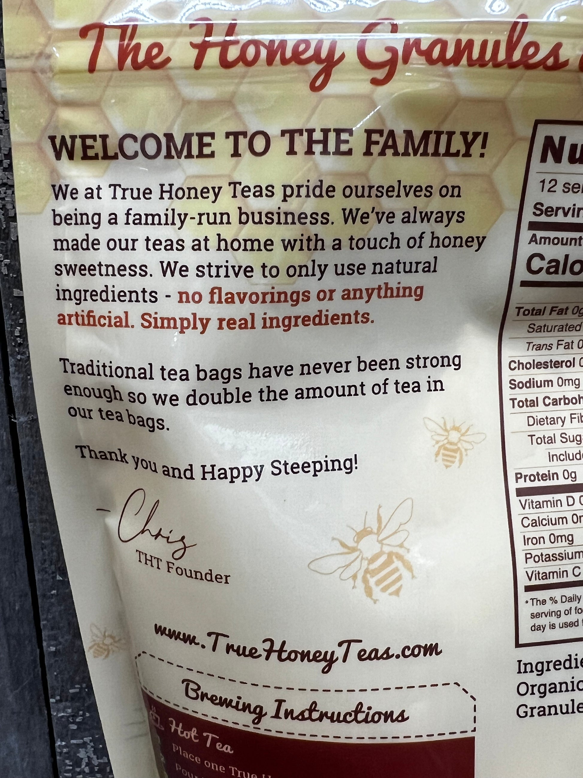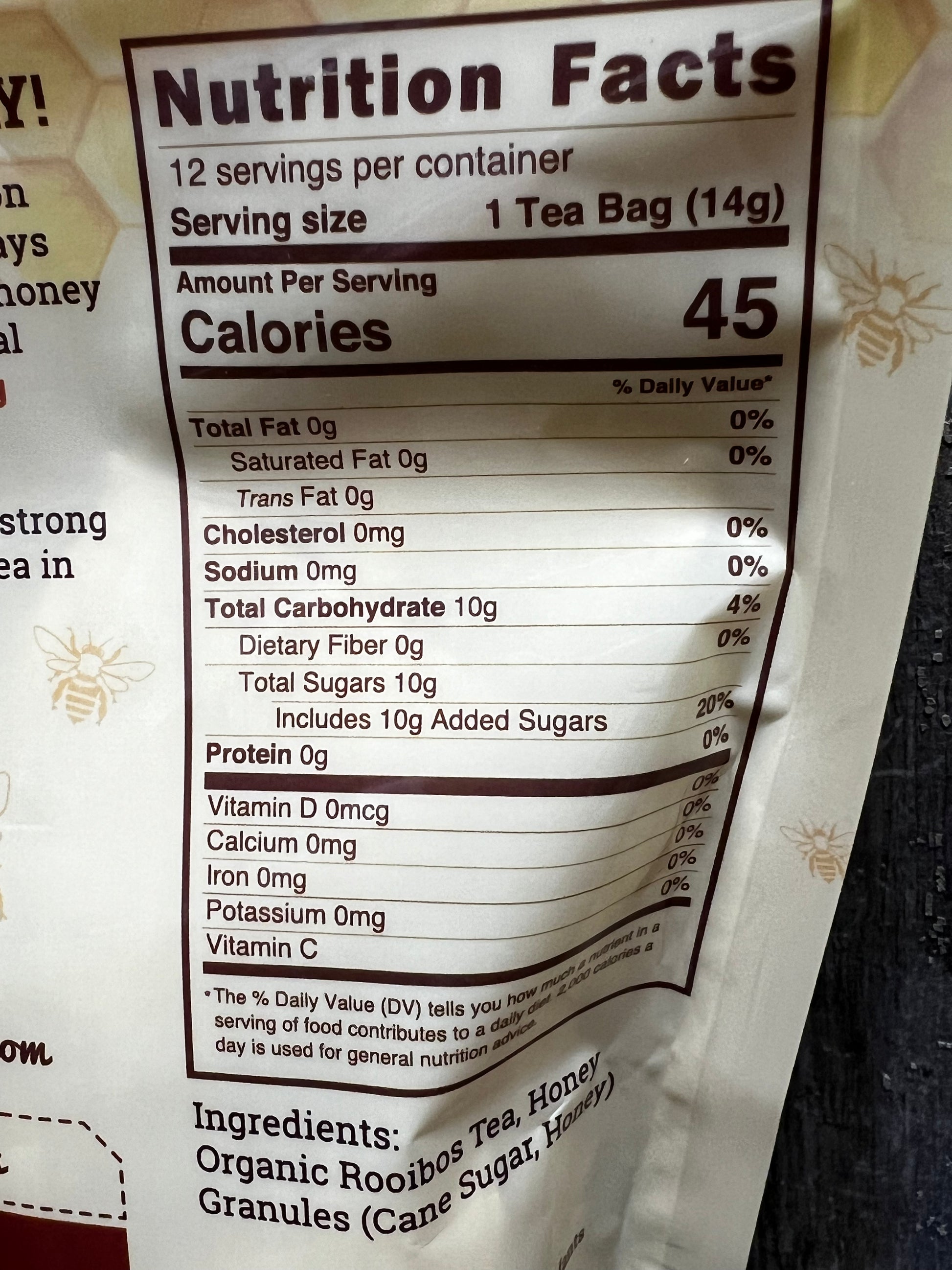 Ingredients: Rooibos Tea, Honey Granules (Cane Sugar, Honey)