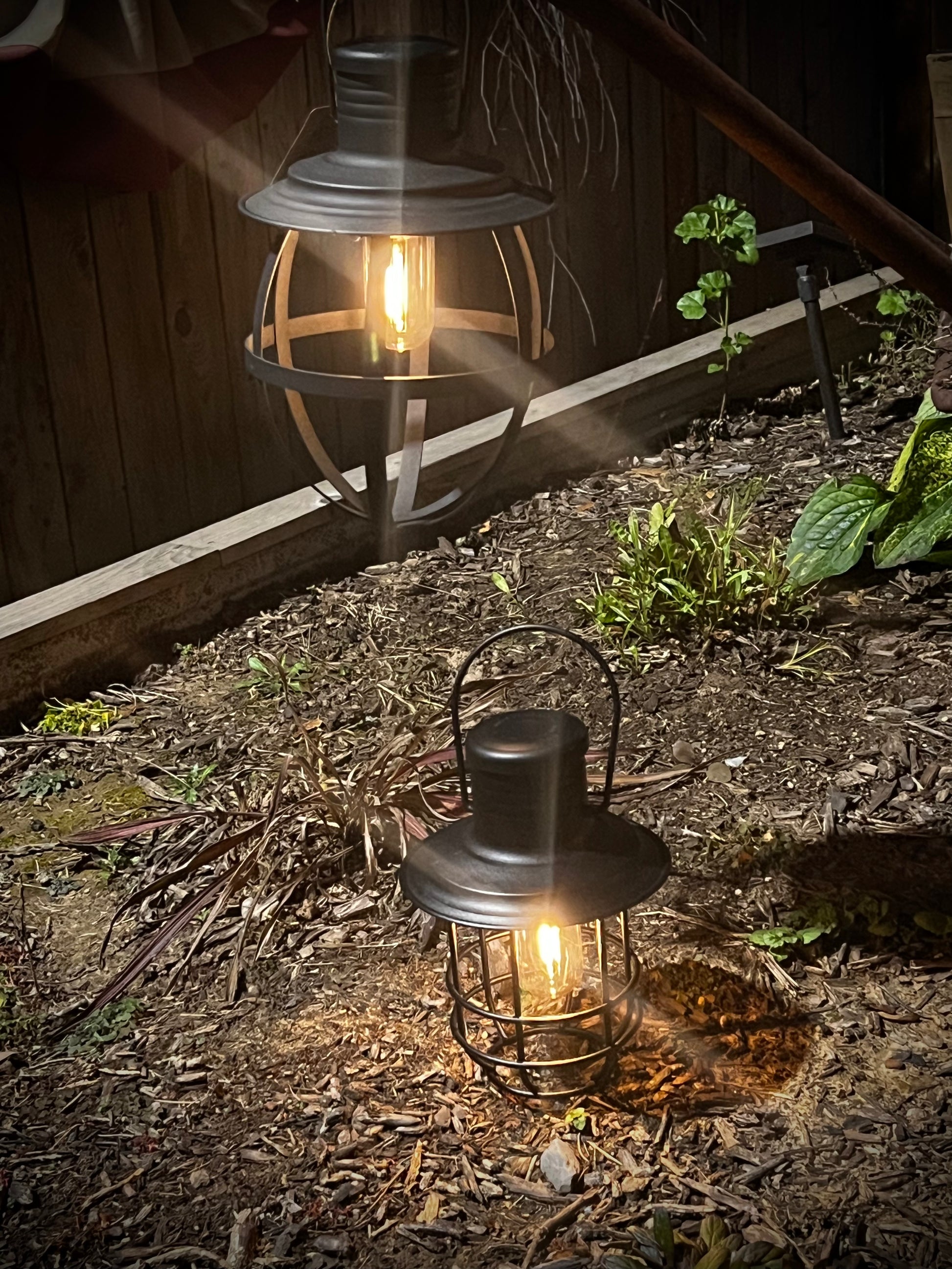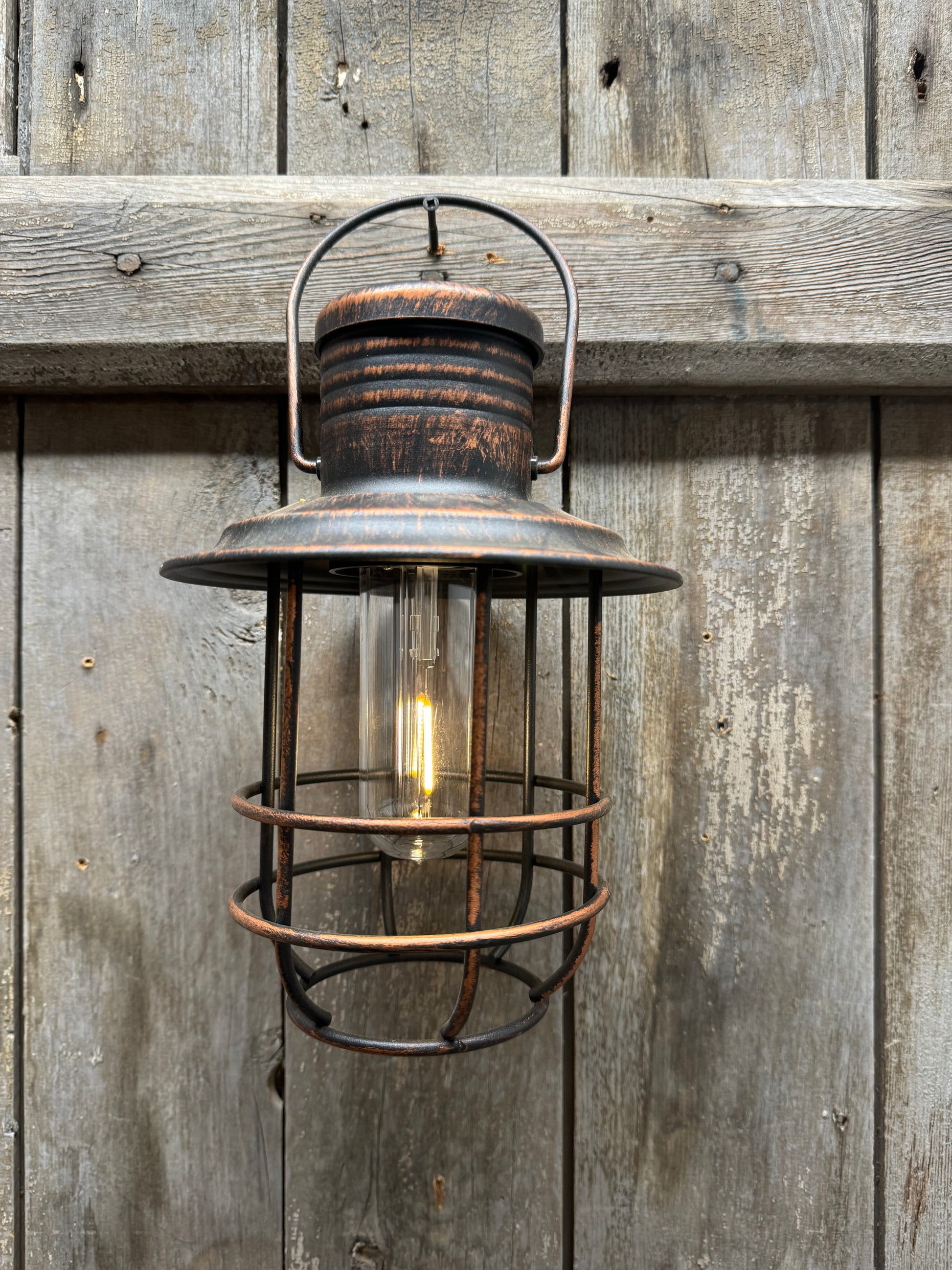 Sitting/Hanging Lantern, Battery Operated, BLACK or RUSTY BRONZE