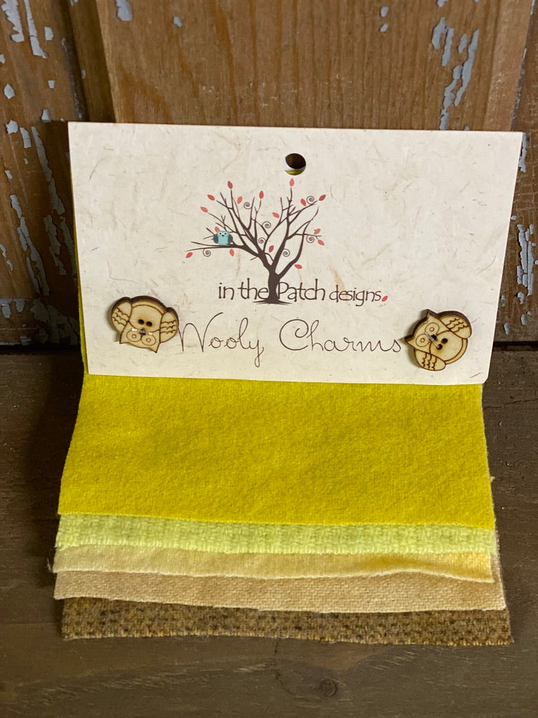 Wooly Charm Pack of 5...5" squares. You will receive one each of 5 coordinating patterns/solids. Perfect for small projects!