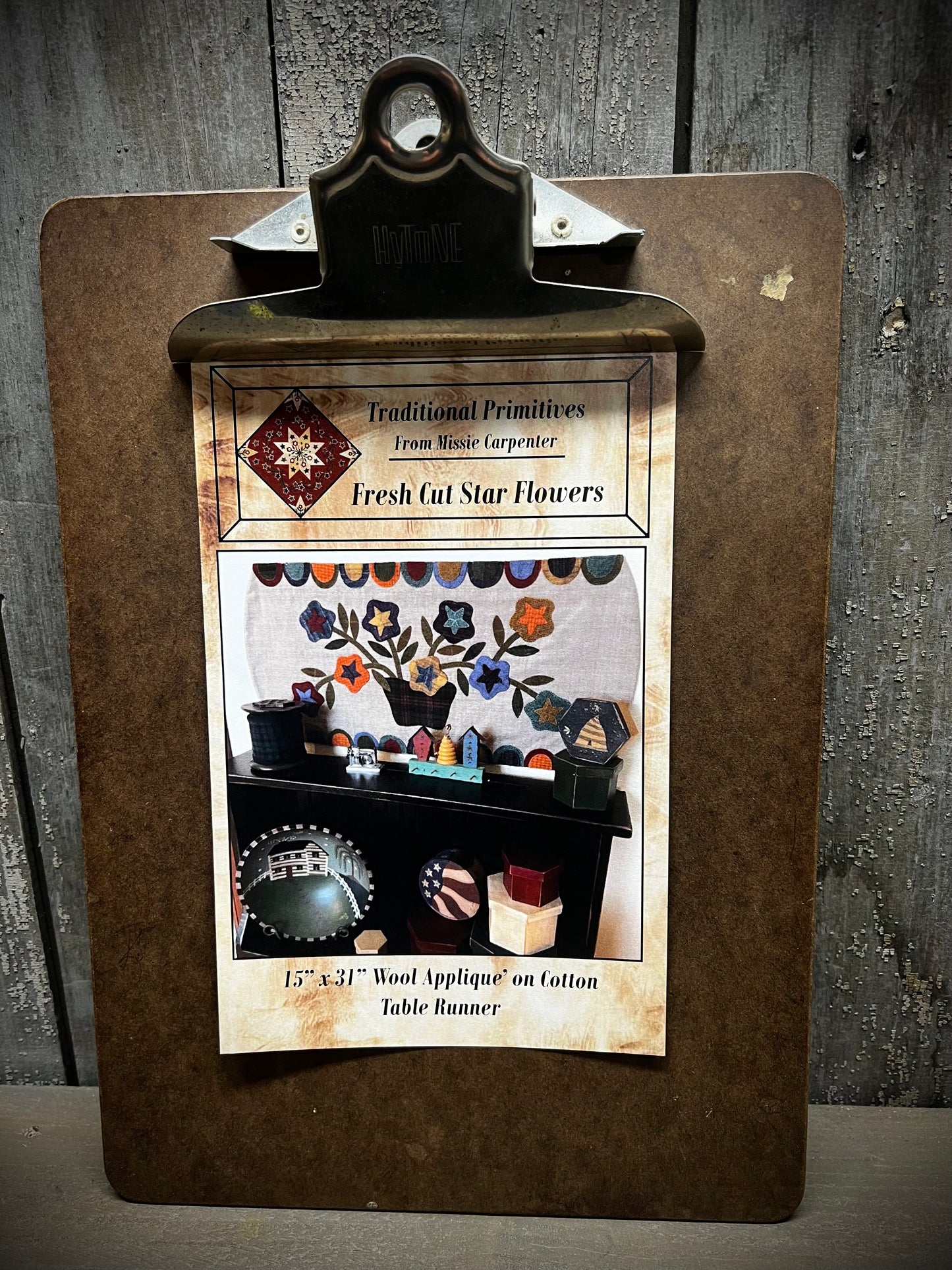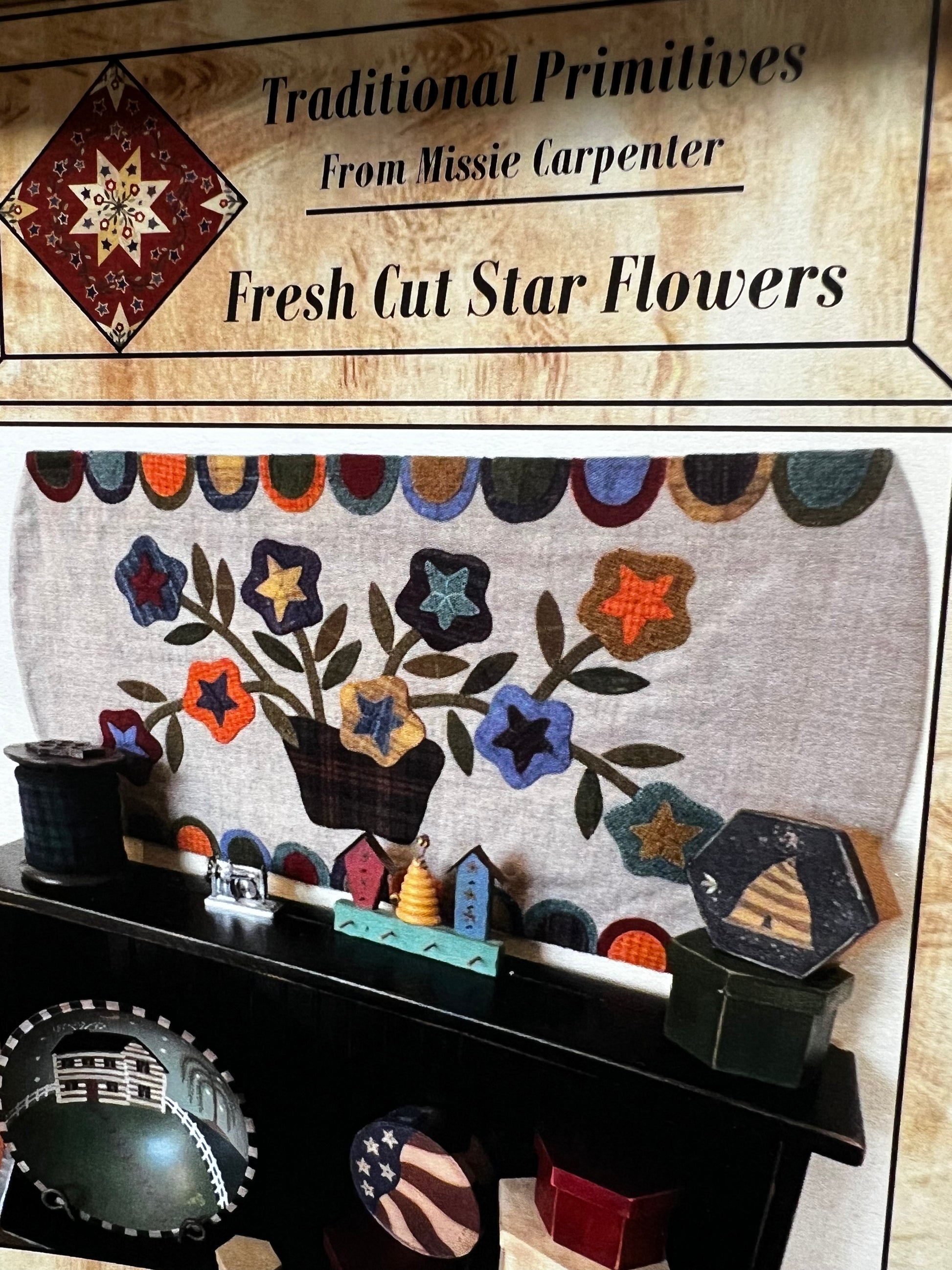 This beautiful Wool Applique on Cotton design is so fun and a great way to use up your scraps of wool! Measuring 15"x 31" it is the perfect runner size for a table or even to hang on the wall. The pattern cover shows the project made with both wool and cotton fabrics, but you could use all wool. The pattern is pre printed on freezer paper. Wool and cotton fabric sold separately.