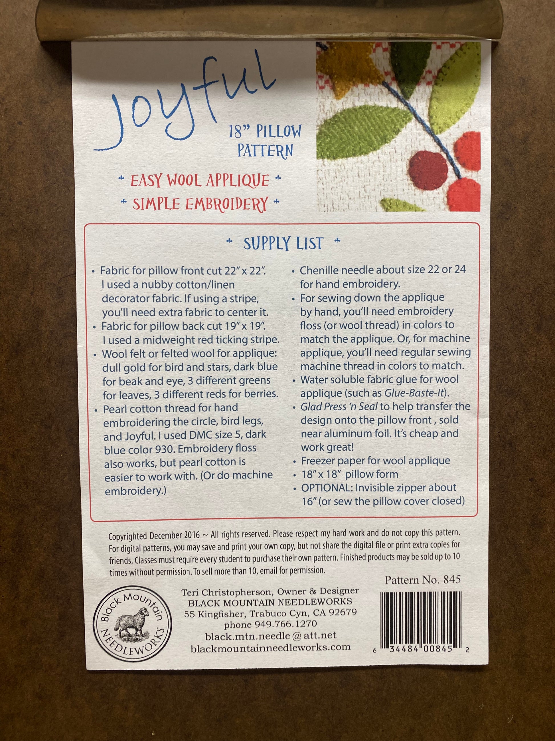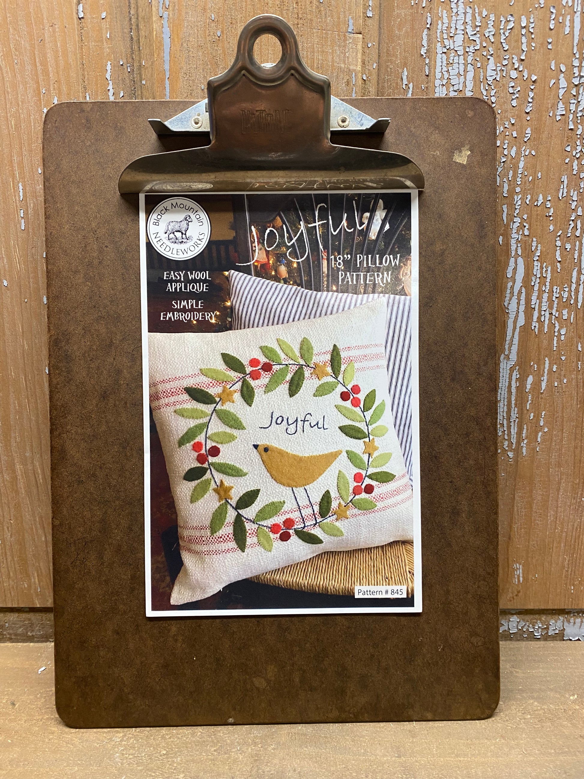 This easy wool applique pillow pattern is sure to bring you JOY!