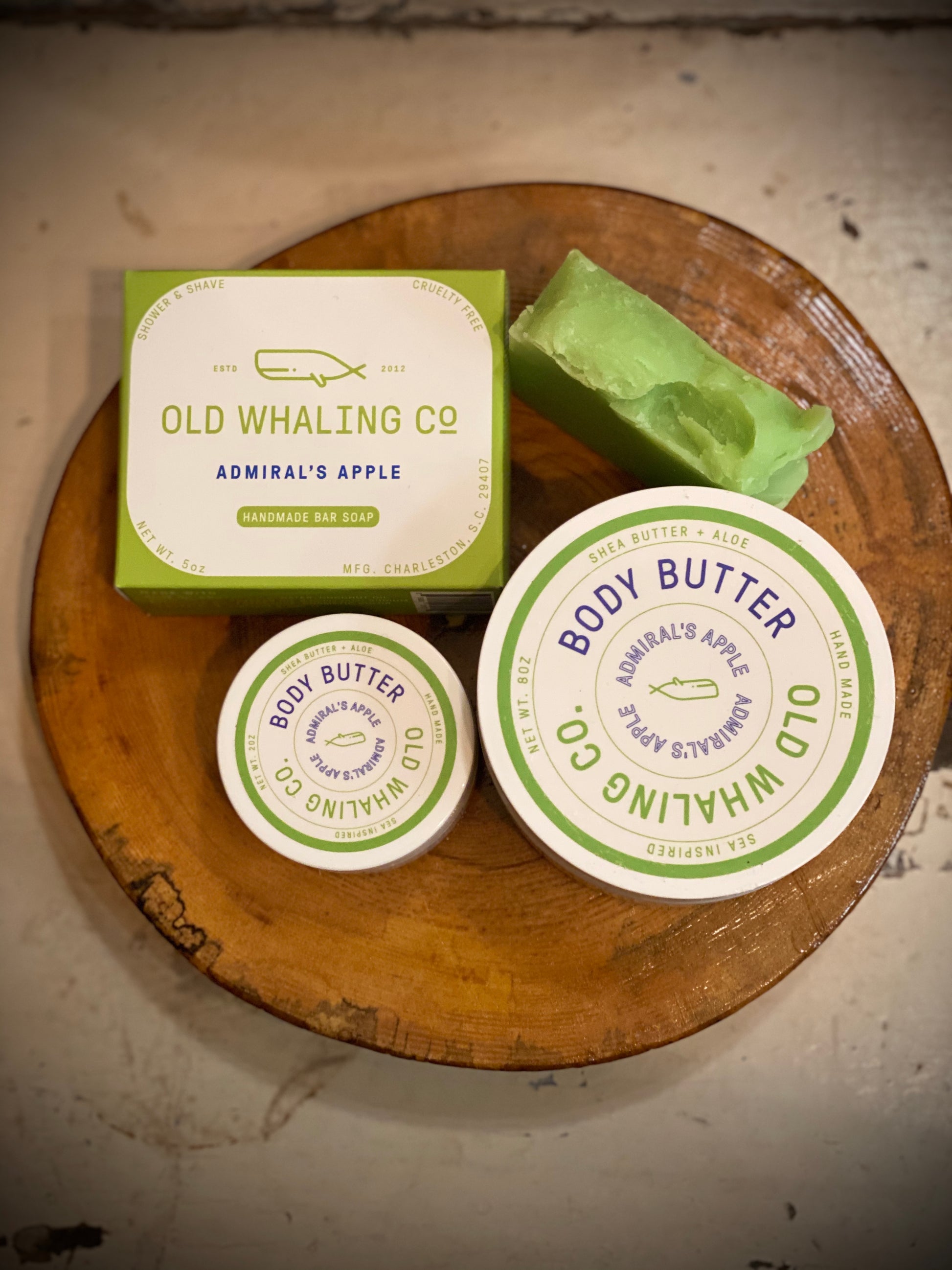 The 8 ounce body butter is perfect for bathrooms and bedside tables, the 2 ounce is the right size for travel and the 5 ounce handcrafted soap bar has a gentle, creamy lather that is great for shaving, bathing, hands and faces. It is cleansing, moisturizing and lovely to use from hair to toes! Our handcrafted soap bars are large, weighing around 5oz each.