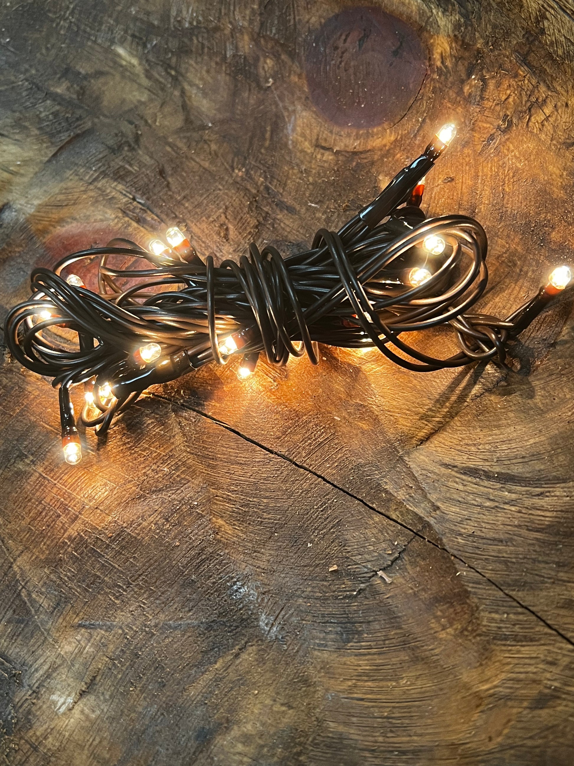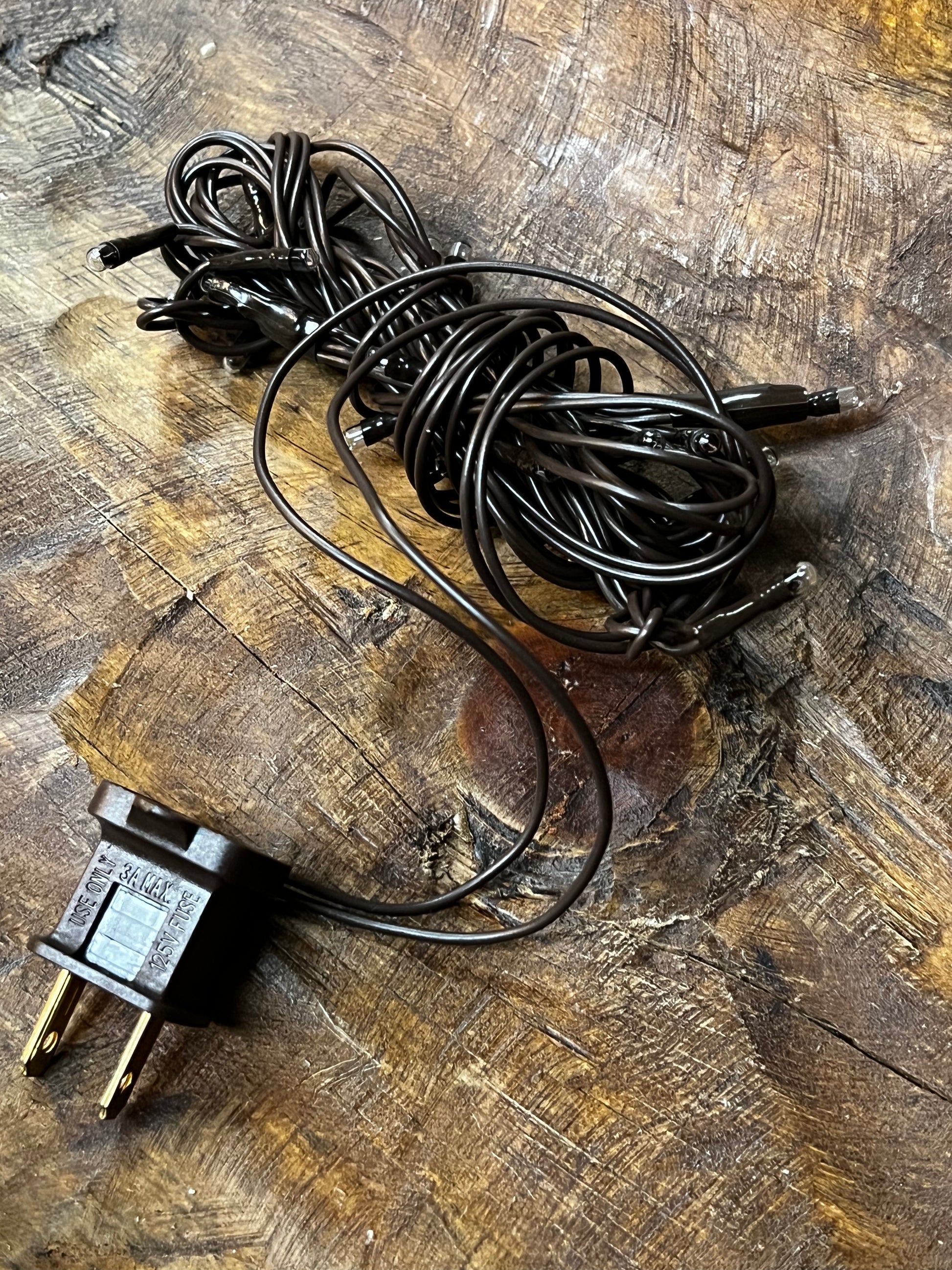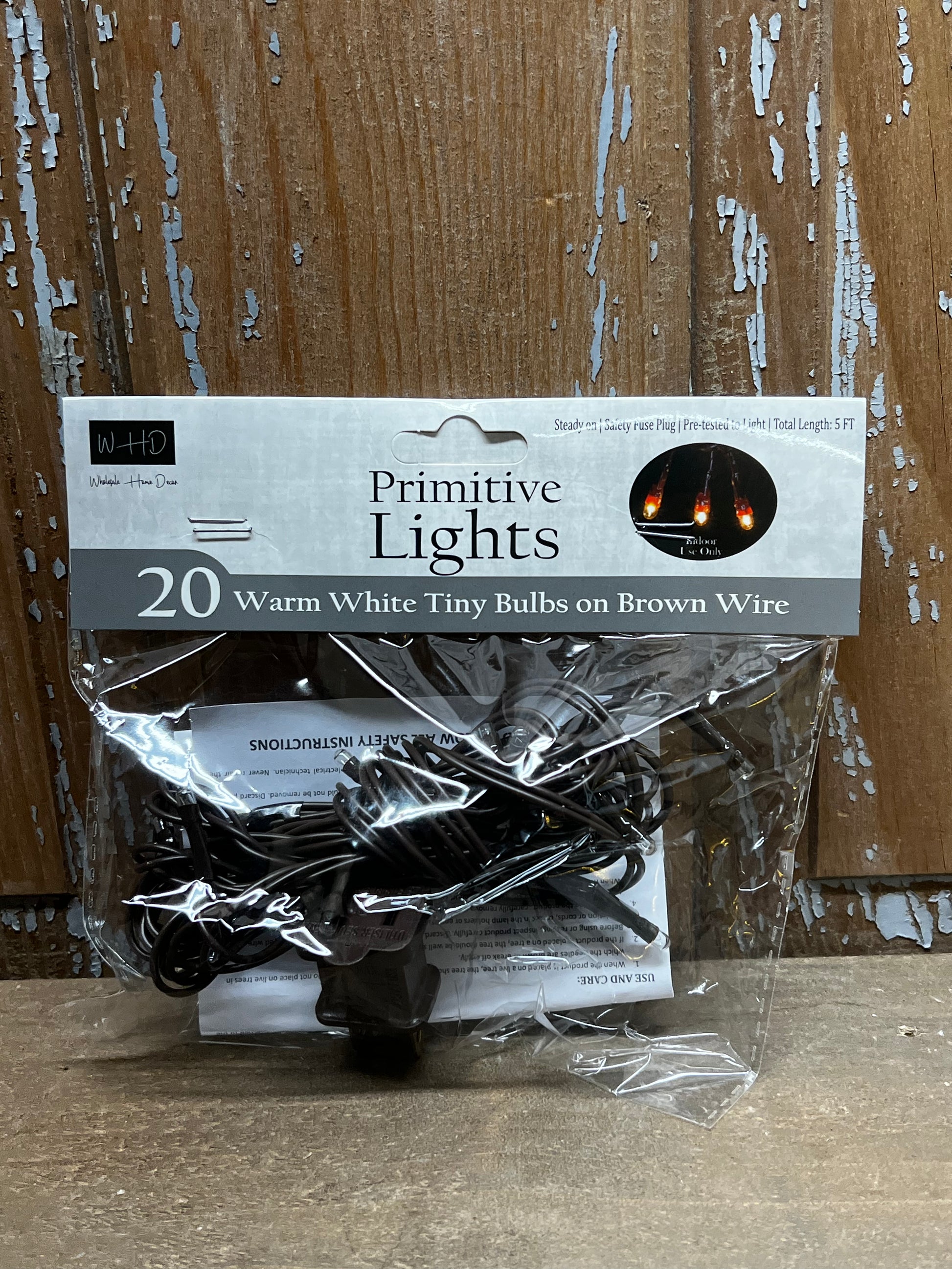 20 Warm White Teeny Bulbs on Brown Wire. 5 ft cord, indoor use only.