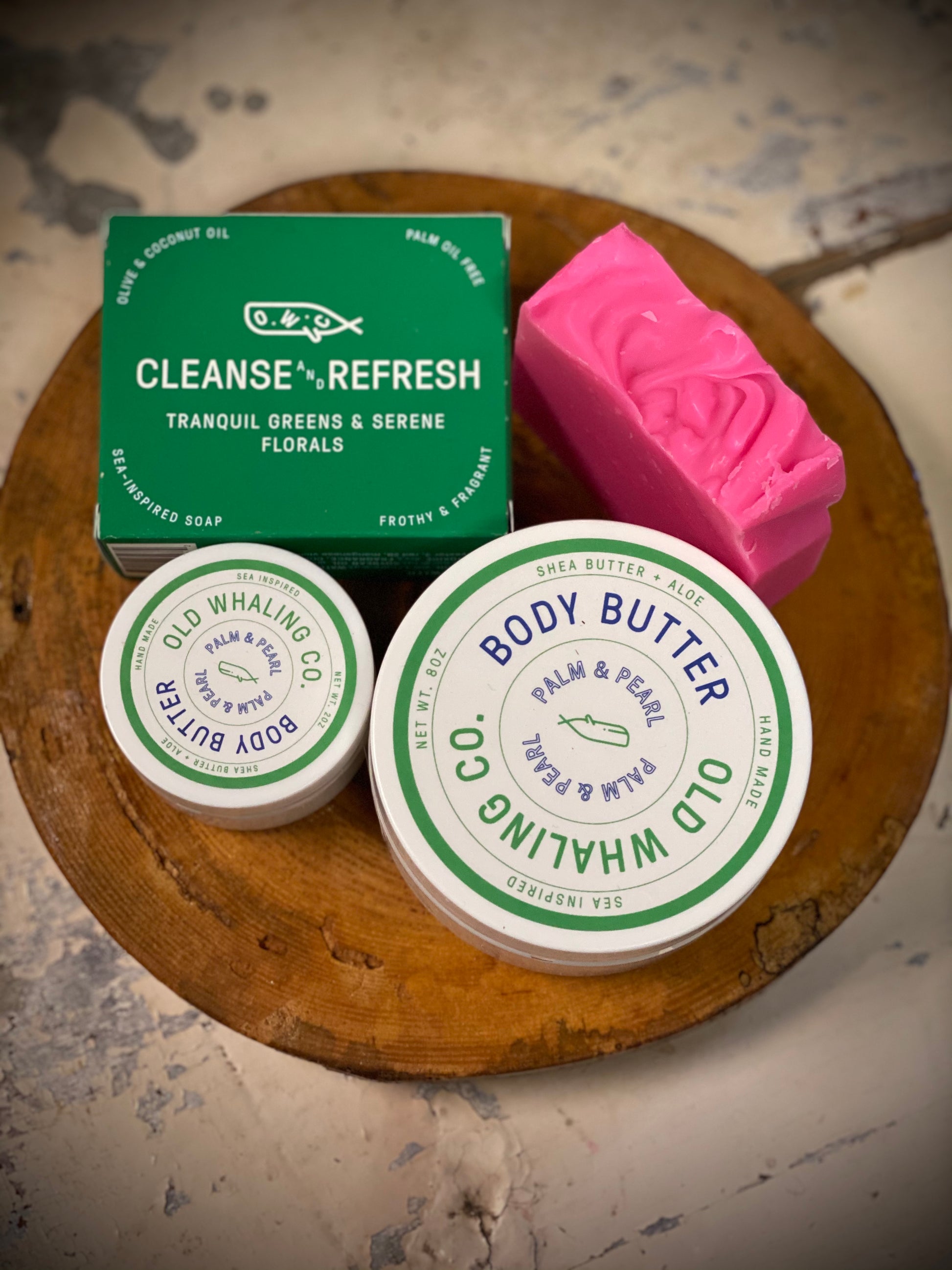The 8 ounce body butter is perfect for bathrooms and bedside tables, the 2 ounce is the right size for travel and the 5 ounce handcrafted soap bar is perfect for the start of the new year.
