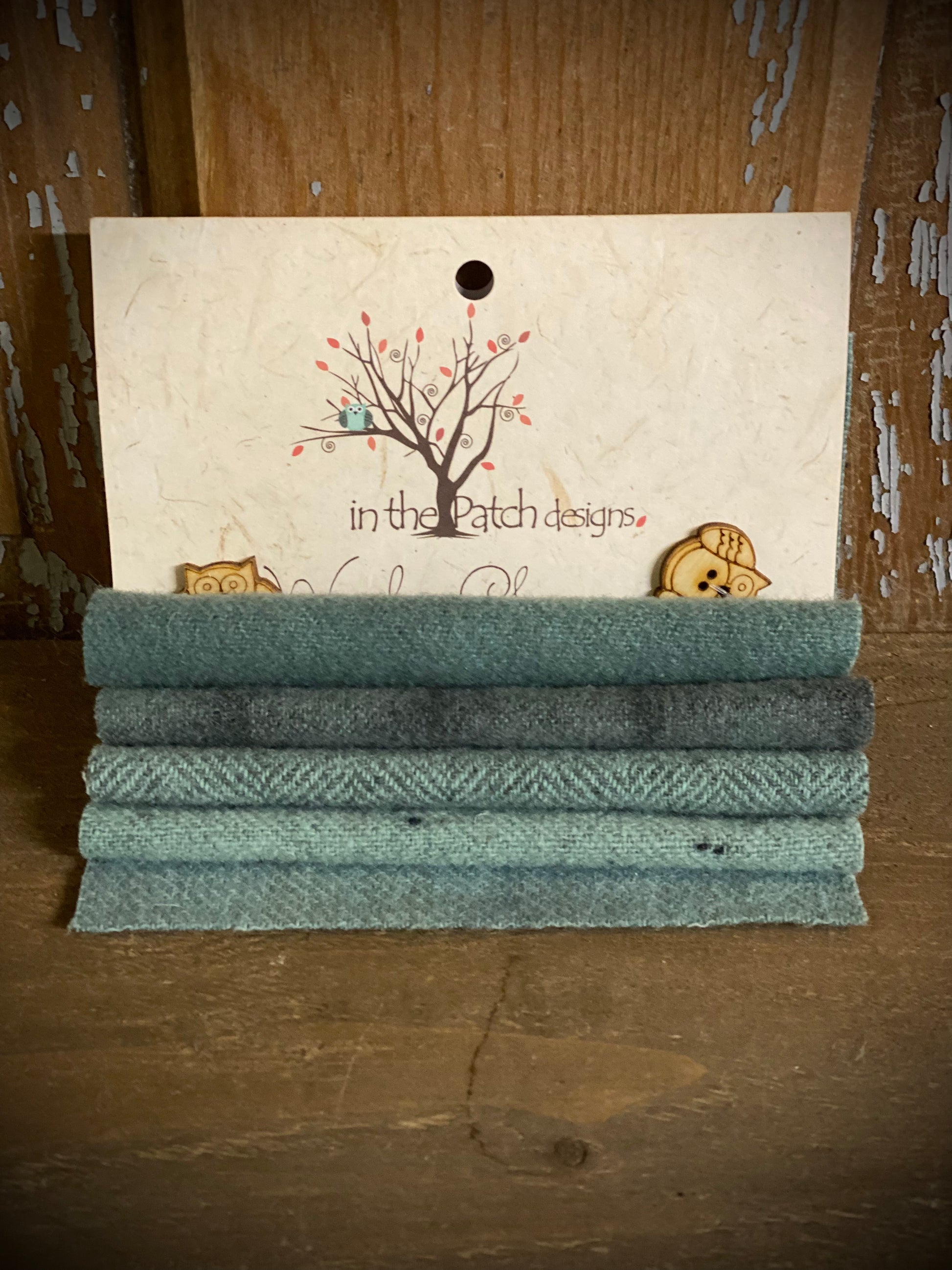 Wooly Charm Pack of 5...5" squares. You will receive one each of 5 coordinating patterns/solids. Perfect for small projects!