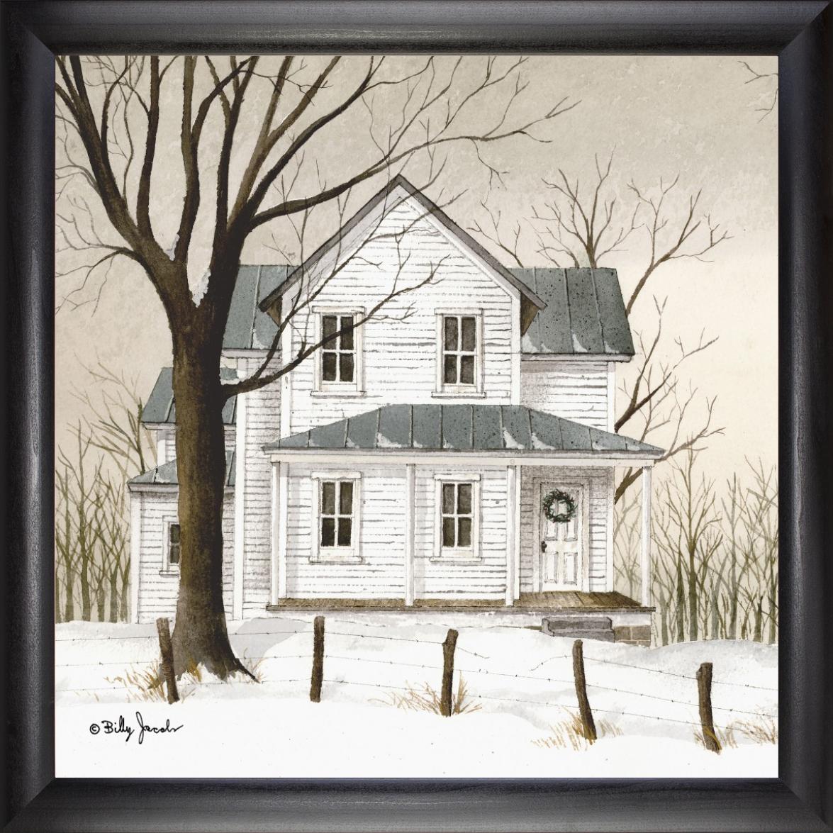 Our PA made framed art is lovely in quality and appearance. Professionally printed on canvas textured wood, the piece is given the look of a hand painted original. Made in Lancaster County, the ridge in the back of the frame makes for easy hanging. No glass. Protective covers protect the corners for shipping and are easily removed. Simple Black Frame. Billy Jacobs