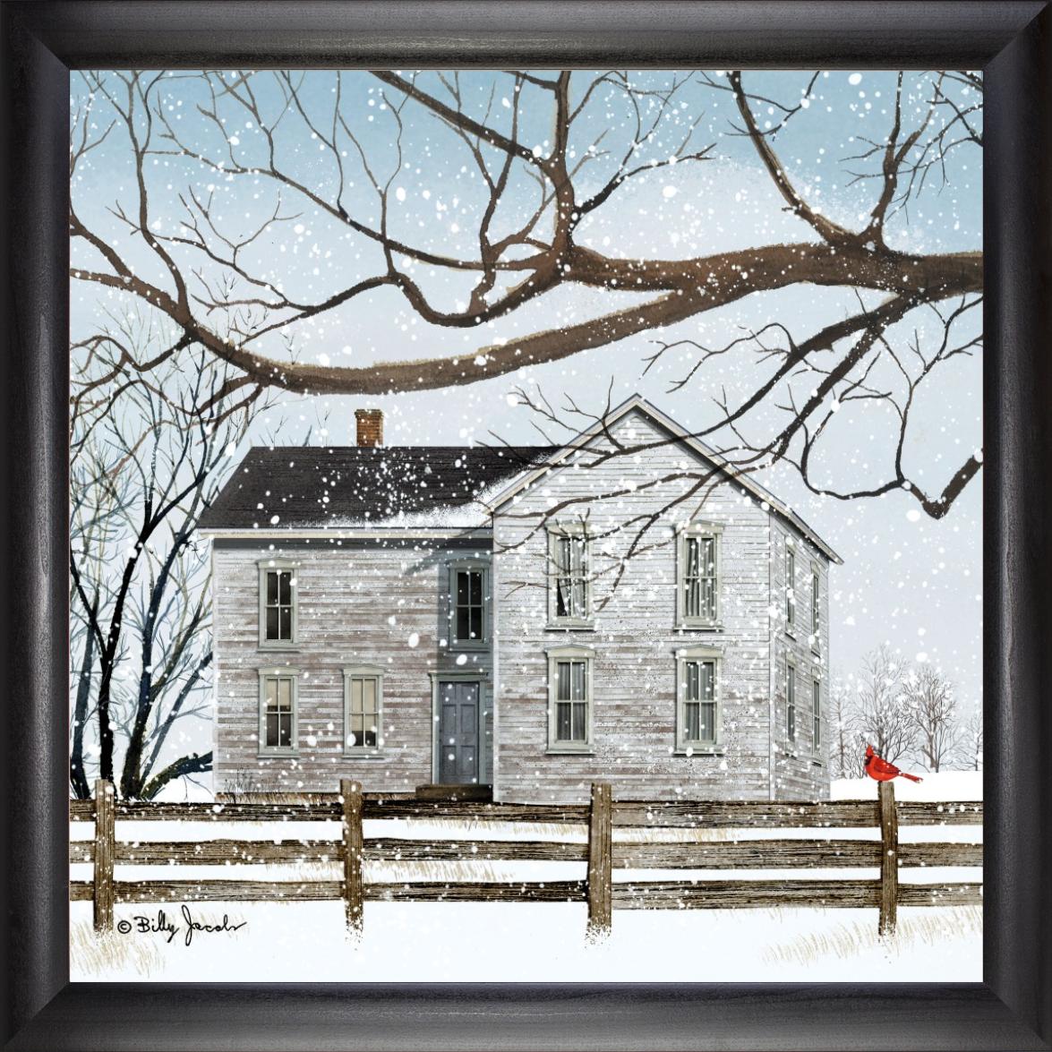 Our PA made framed art is lovely in quality and appearance. Professionally printed on canvas textured wood, the piece is given the look of a hand painted original. Made in Lancaster County, the ridge in the back of the frame makes for easy hanging. No glass. Protective covers protect the corners for shipping and are easily removed. Simple Black Frame. Billy Jacobs